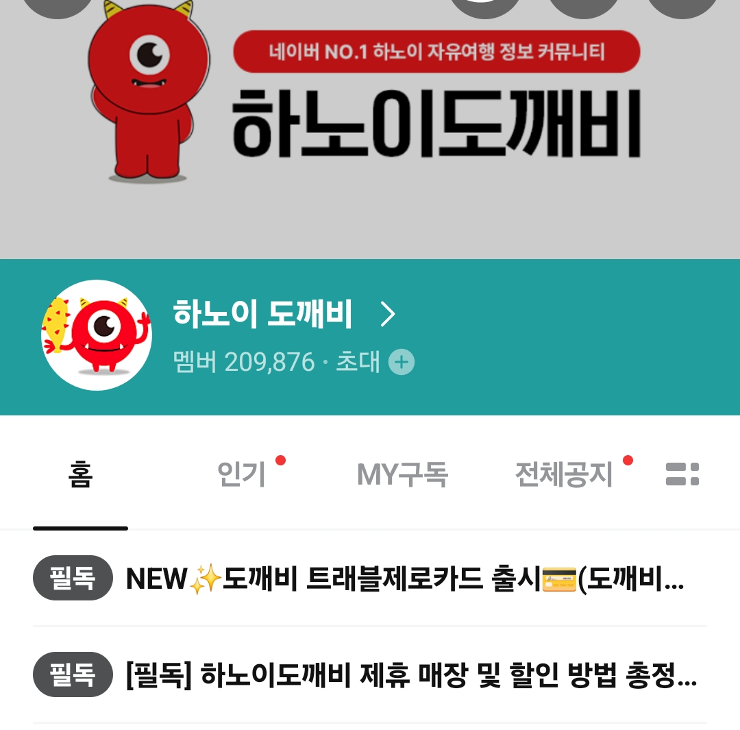 하노이도깨비 카페에 가입 후 둘러보던 중