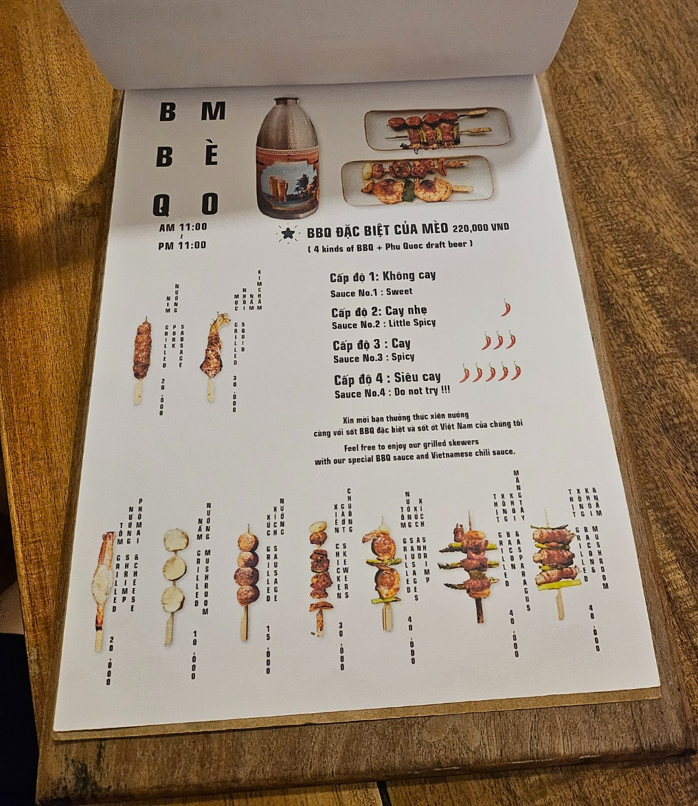 메오키친에서는 베트남 음식뿐 아니라 꼬치구이, 음료, 주류 등을