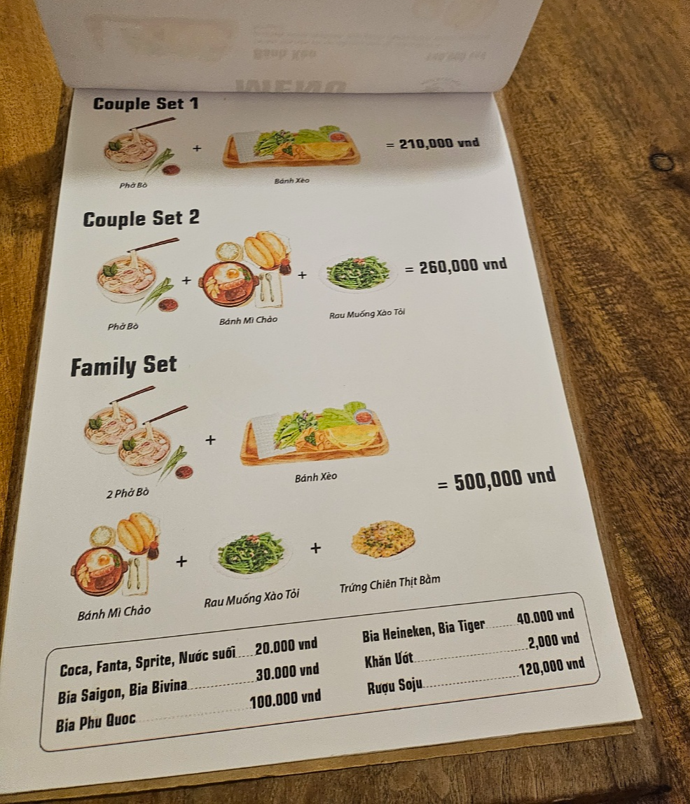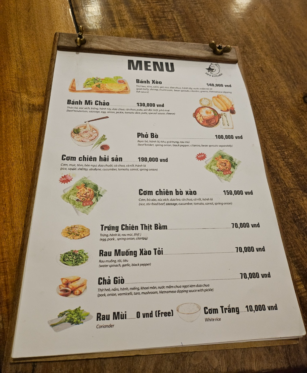 모닝글로리, 반쎄오, 쌀국수, 볶음밥, 반미 등 다양한 메뉴들을