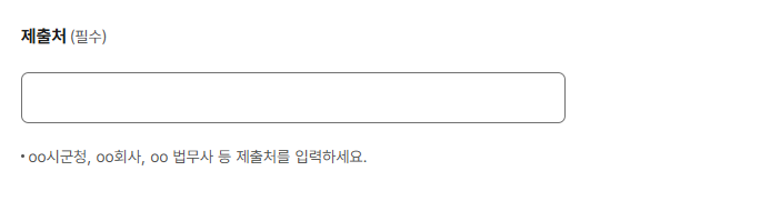 ㅇㅇ시군청, ㅇㅇ회사 등으로 제출처를 입력합니다.