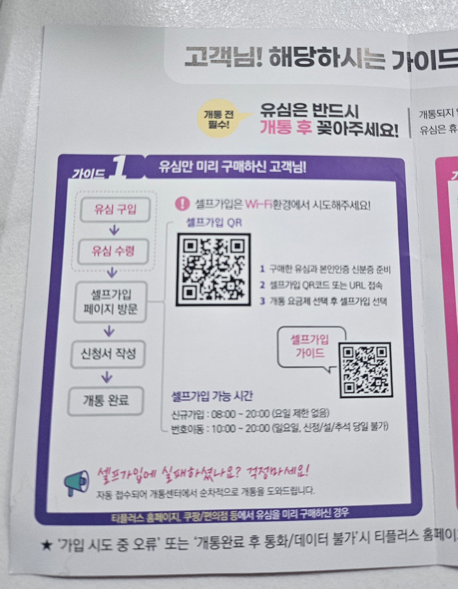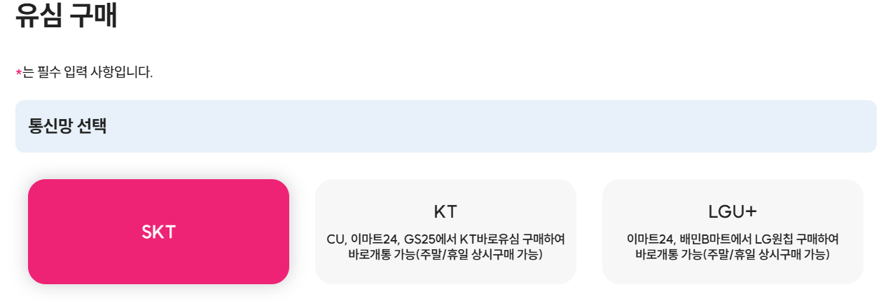 KT나 LG U+의 경우 편의점에서 바로 개통이 가능했는데
