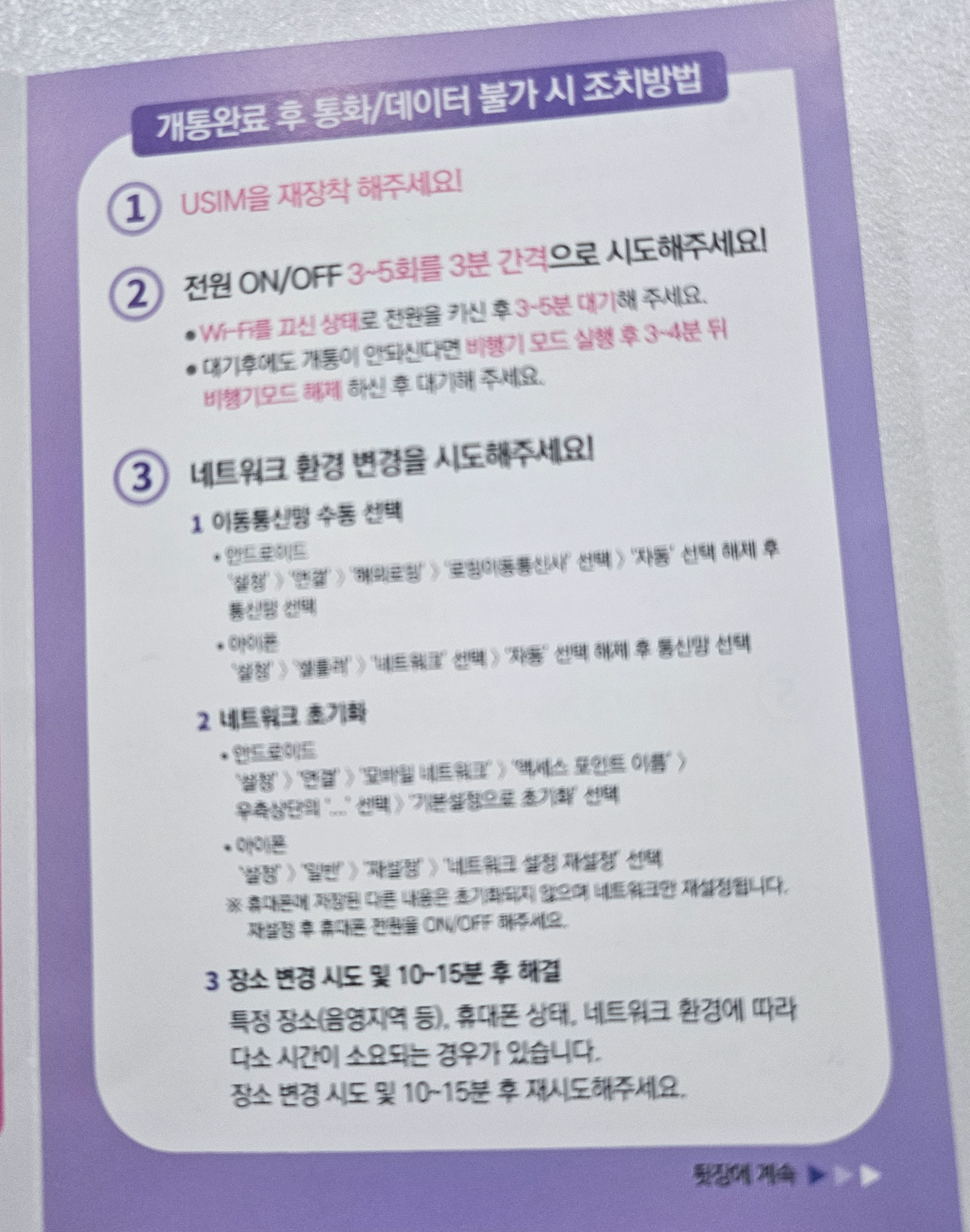 이 문자를 받고 핸드폰에 유심을 장착하여 2~3번 껐다 켰더니