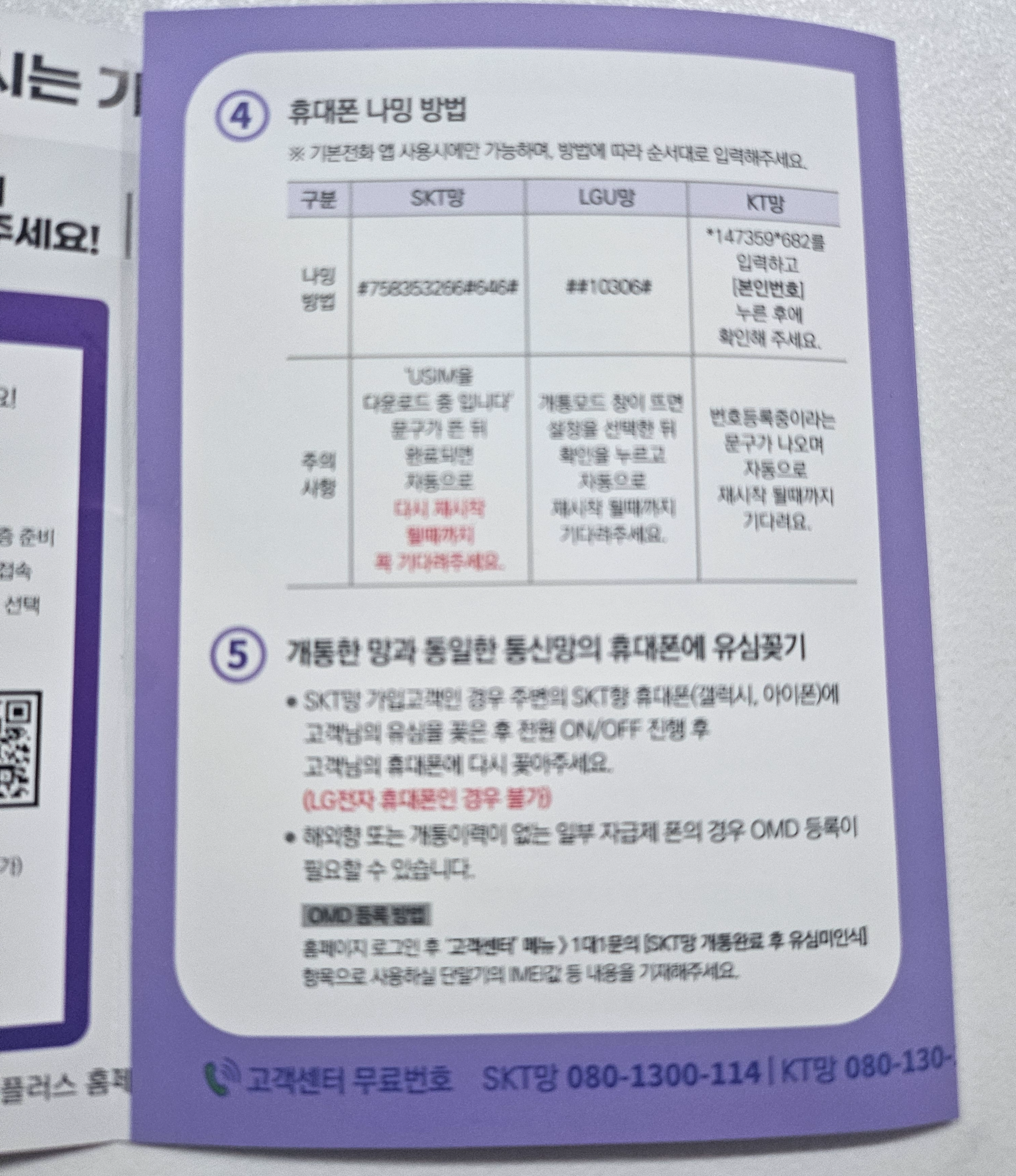 5. 미성년자의 경우 번호가 설정되어 개통되기 때문에
