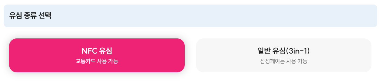 교통카드는 지원되지 않지만 삼성페이는 가능한 일반유심을 판매합니다.