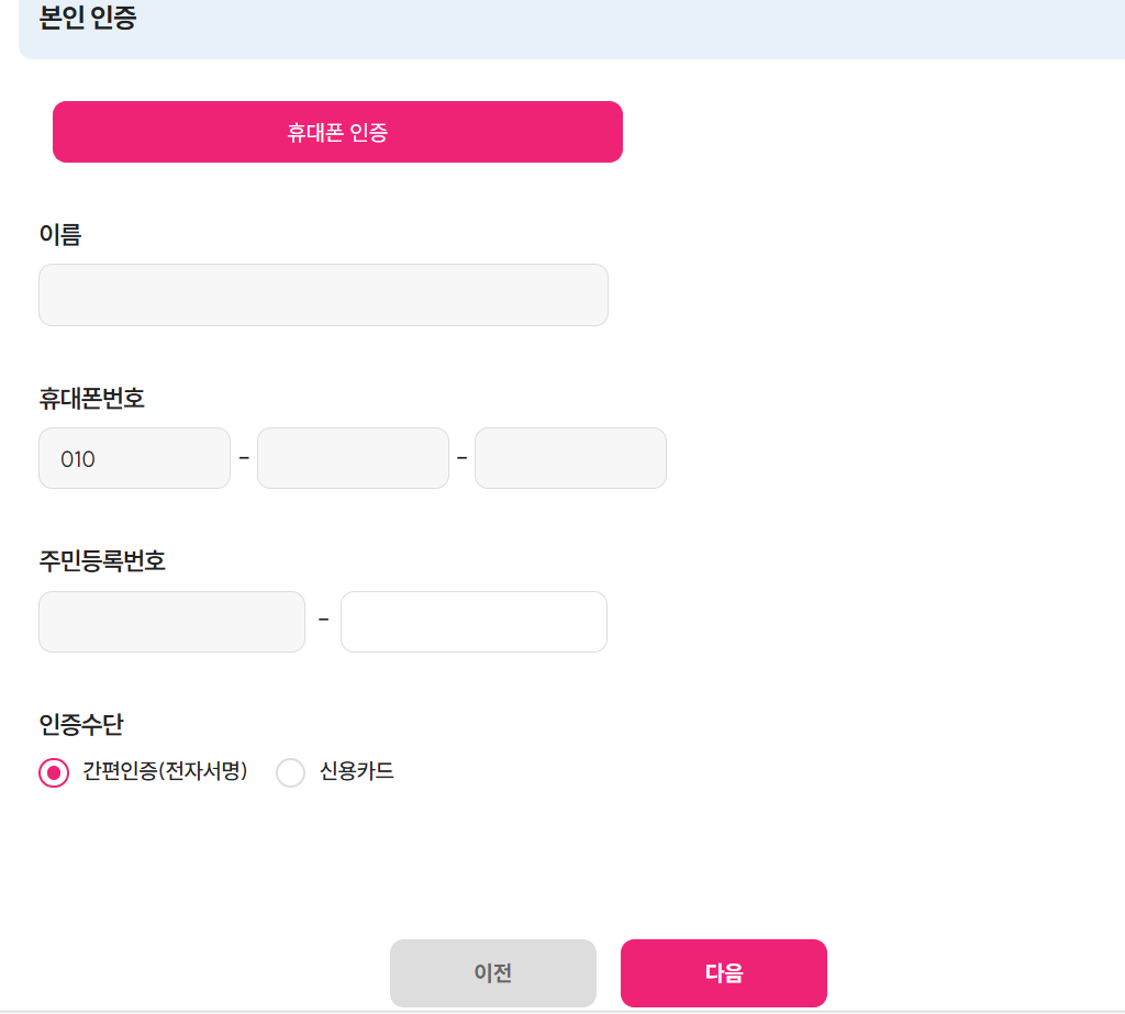 (미성년자의 경우 본인인증은 아이핀에 가입하여 확인 가능)