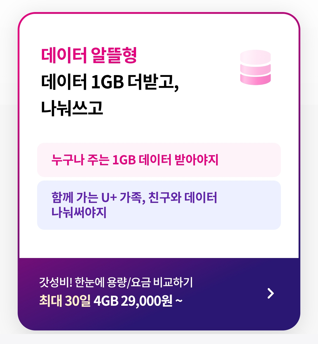 LG U+ 앱에서 신청했을 때 추가로 1기가가 지급되어