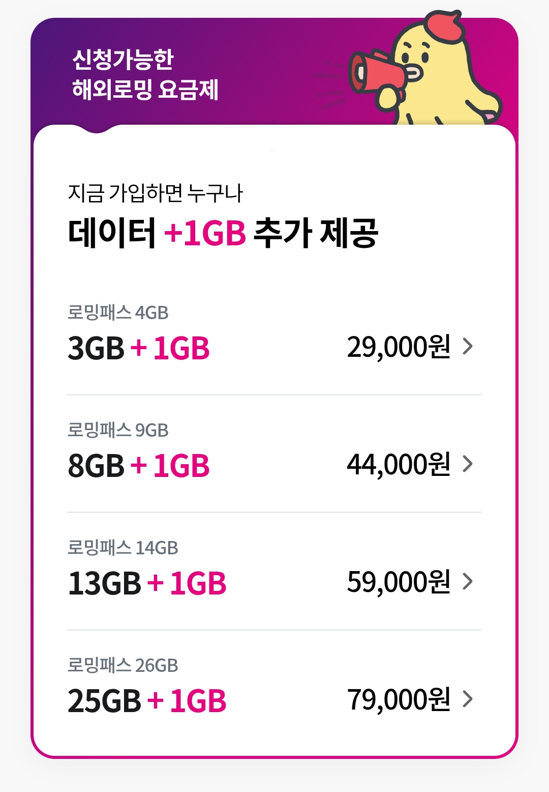 그렇다면 로밍상품에 가입한다면 얼마일까요?