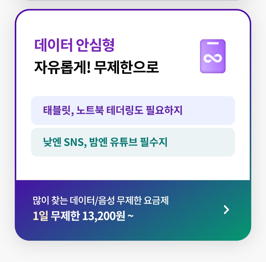 여행 가는 일수에 맞게 데이터양을 고를 수 있어 좋게 되어 있었습니다.