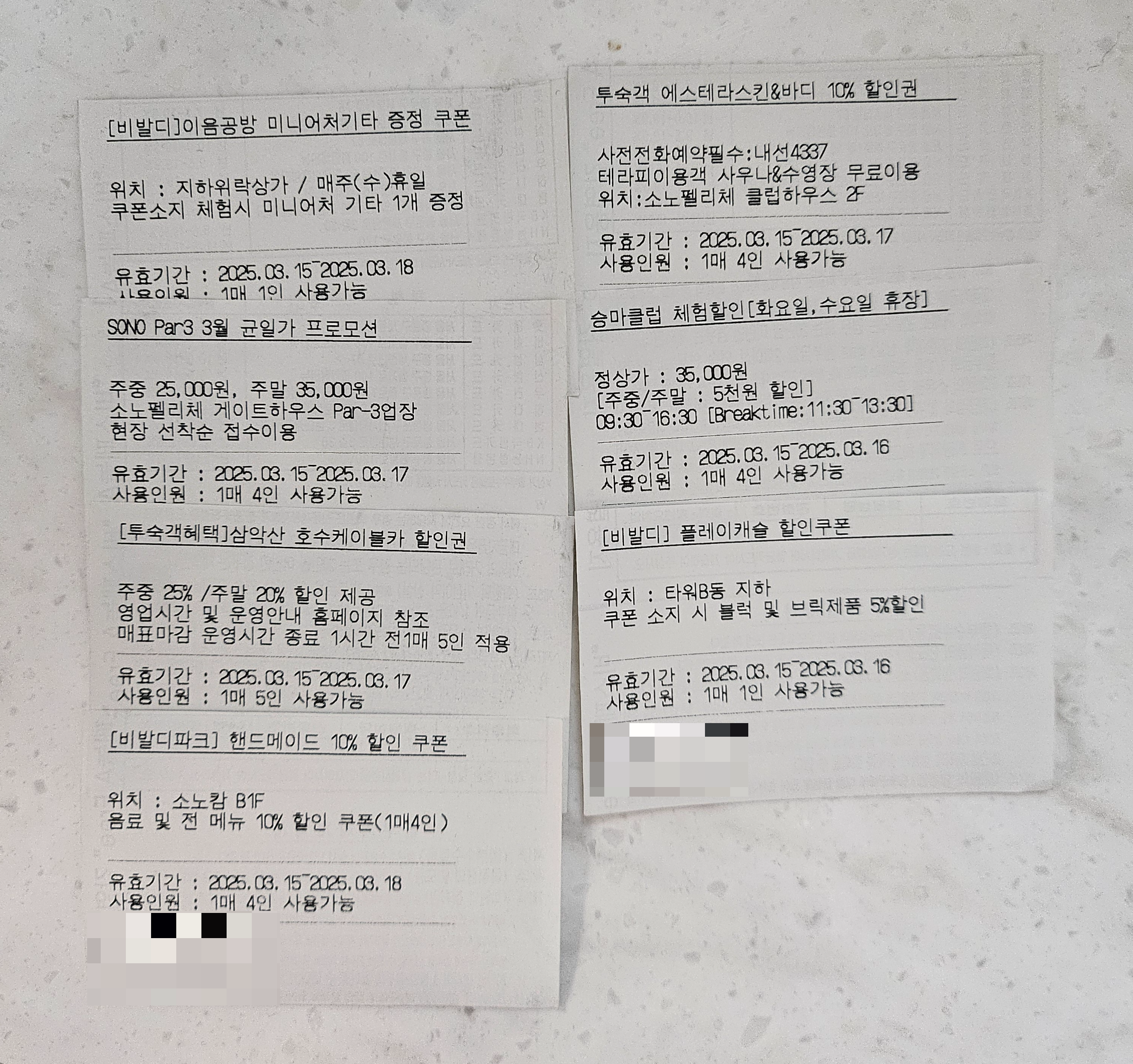 예약했던 패키지 쿠폰과는 별도로 다양한 할인쿠폰들이 제공되었습니다.