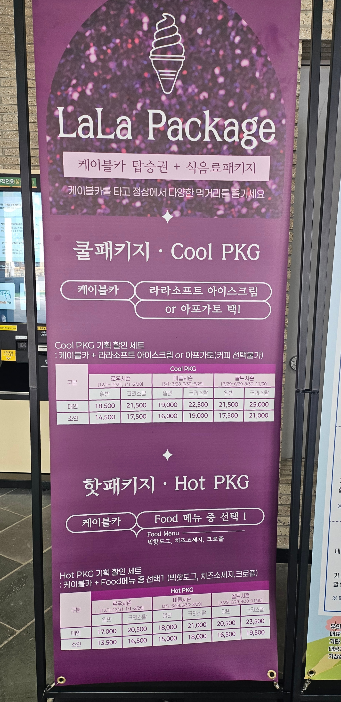 쿨 패키지는 케이블카+라라소프트 아이스크림 or아포가토 택 1 상품입니다.