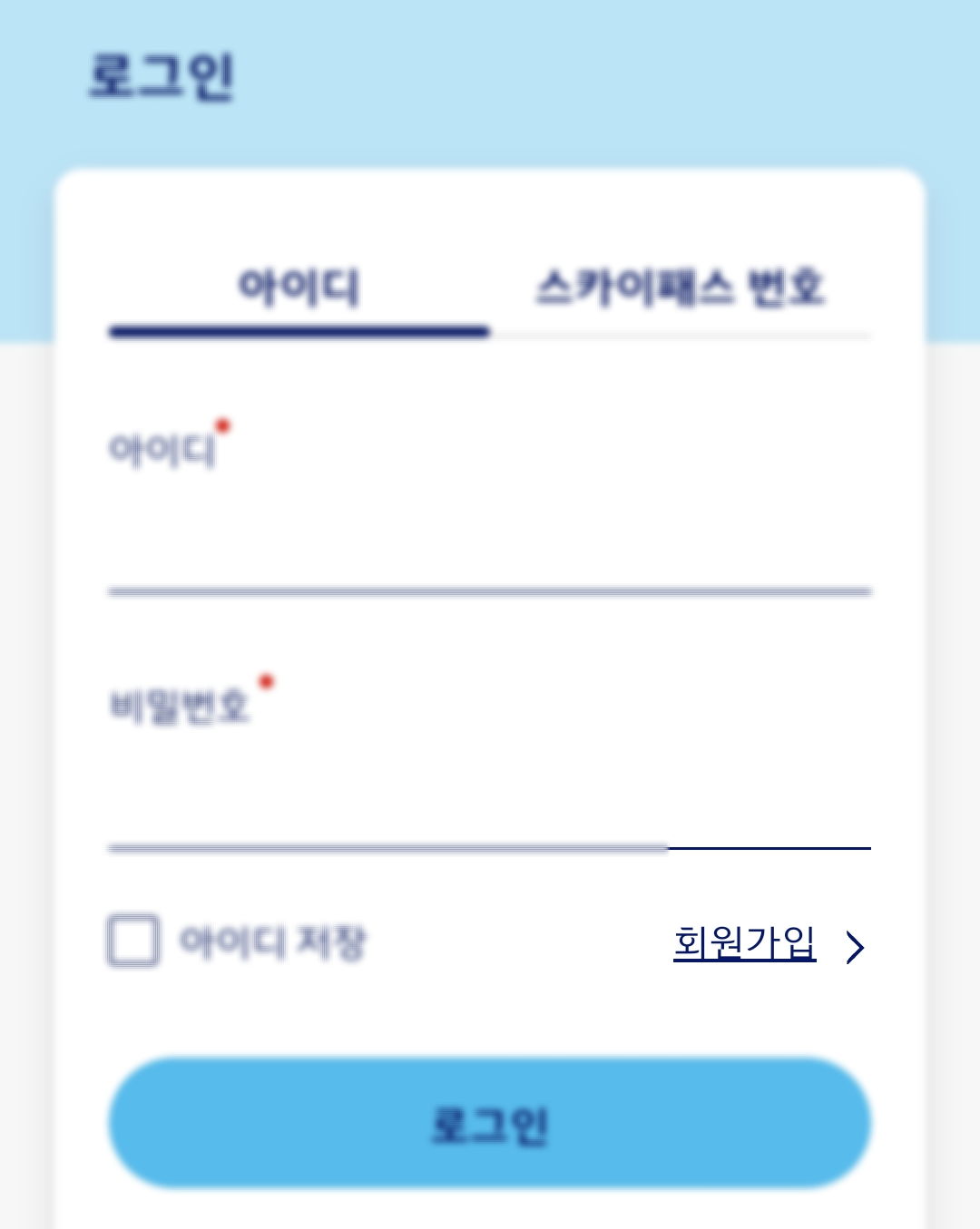 회원가입을 한 후 자신의 스카이패스 번호가 생성됩니다.