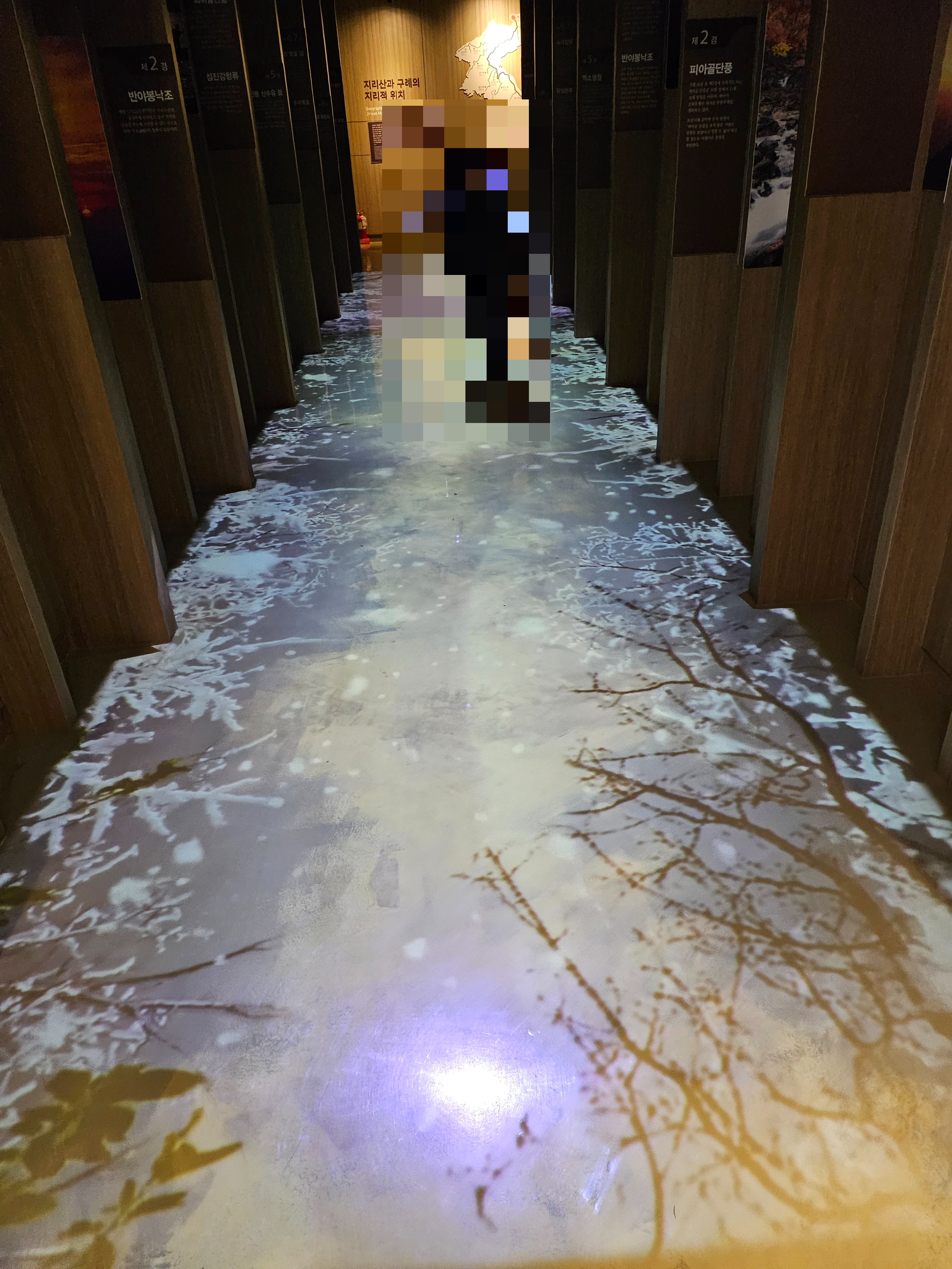 바닥에 표현된 미디어 아트로 지리산의 봄, 여름, 가을, 겨울을 만날 수 있습니다.