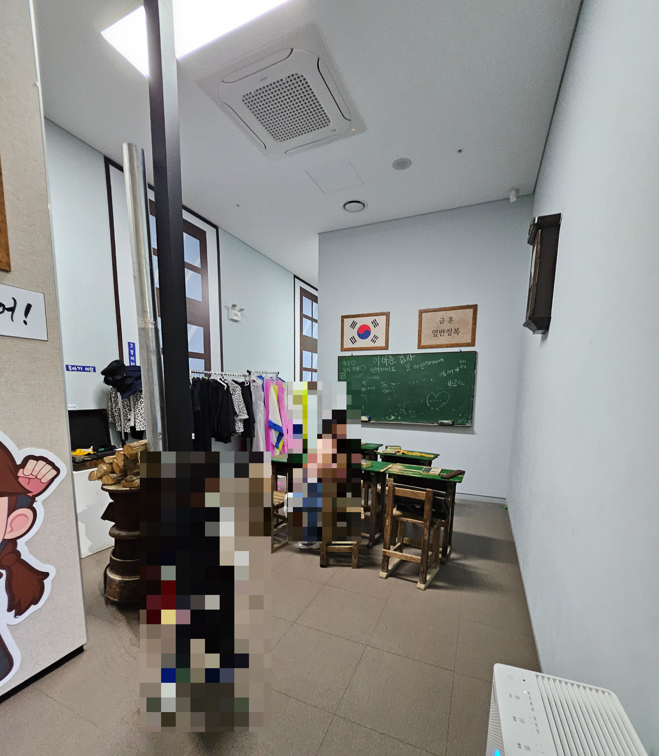 옆으로 실제 옛날 교복이 비치되어 있어 교복을 입어 볼 수 있는 체험공간도 있습니다.
