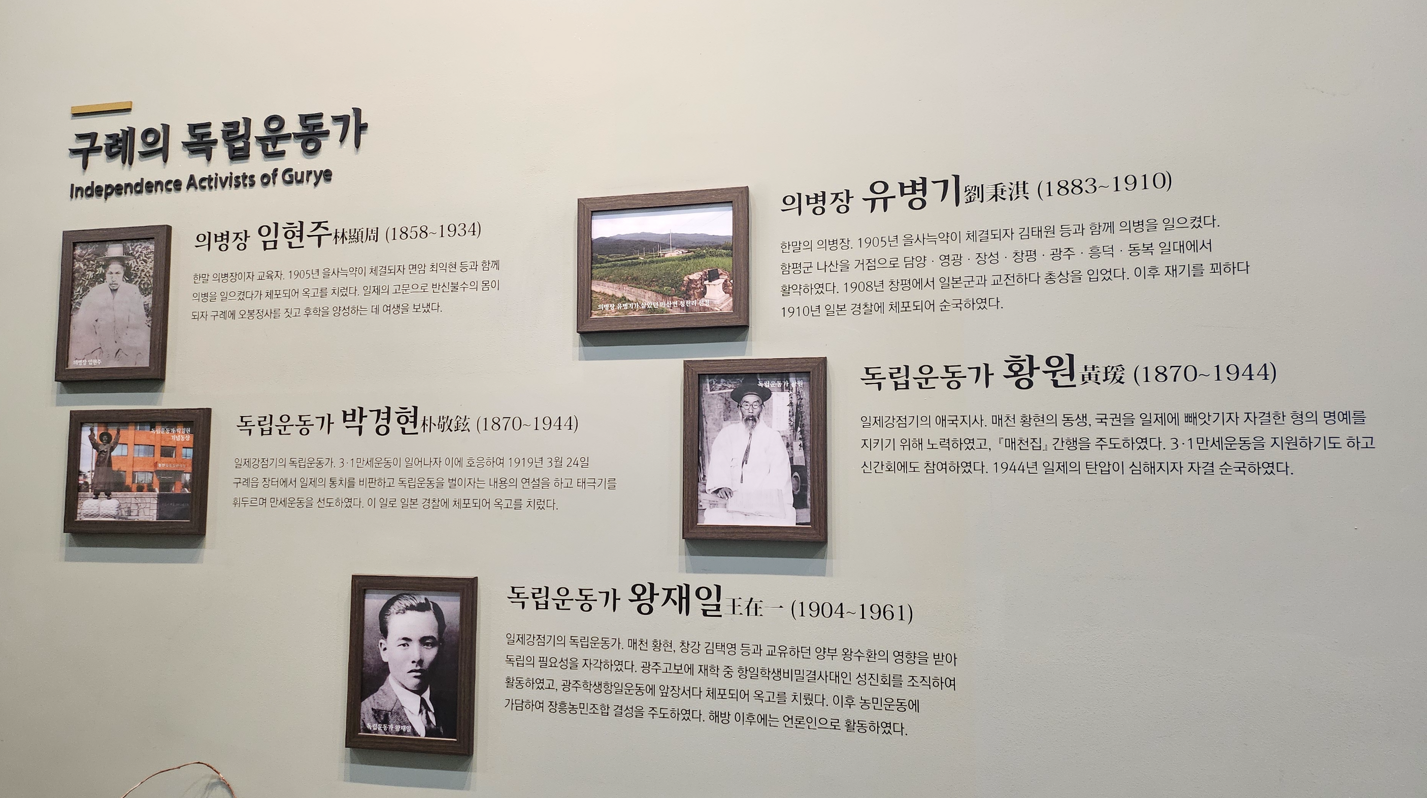 이어 구례의 명사들로 명창과 명인,  독립운동가등을 알 수 있고,