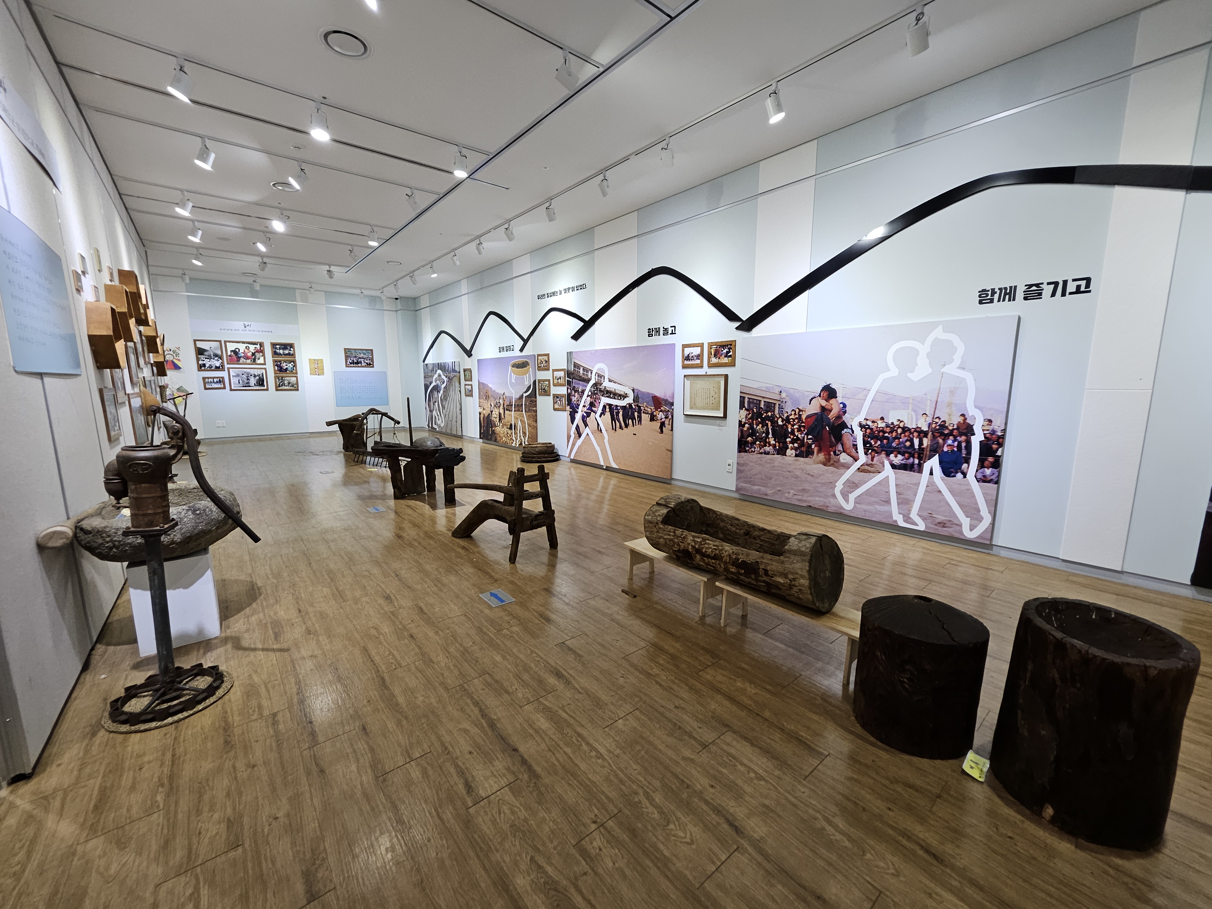 강 따라의 기획전시에 맞춰 전통놀이를 체험할 수 있도록 되어 있어