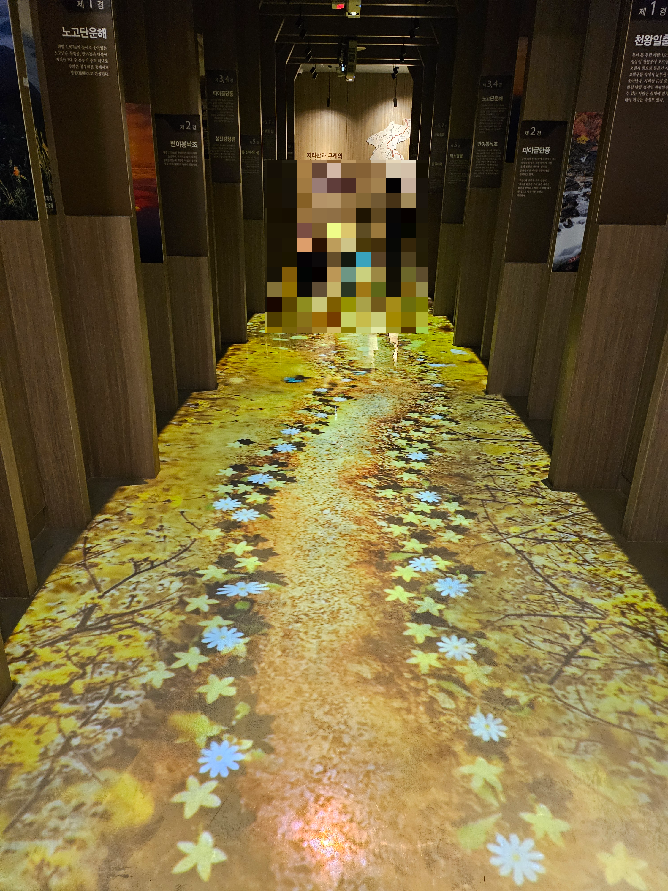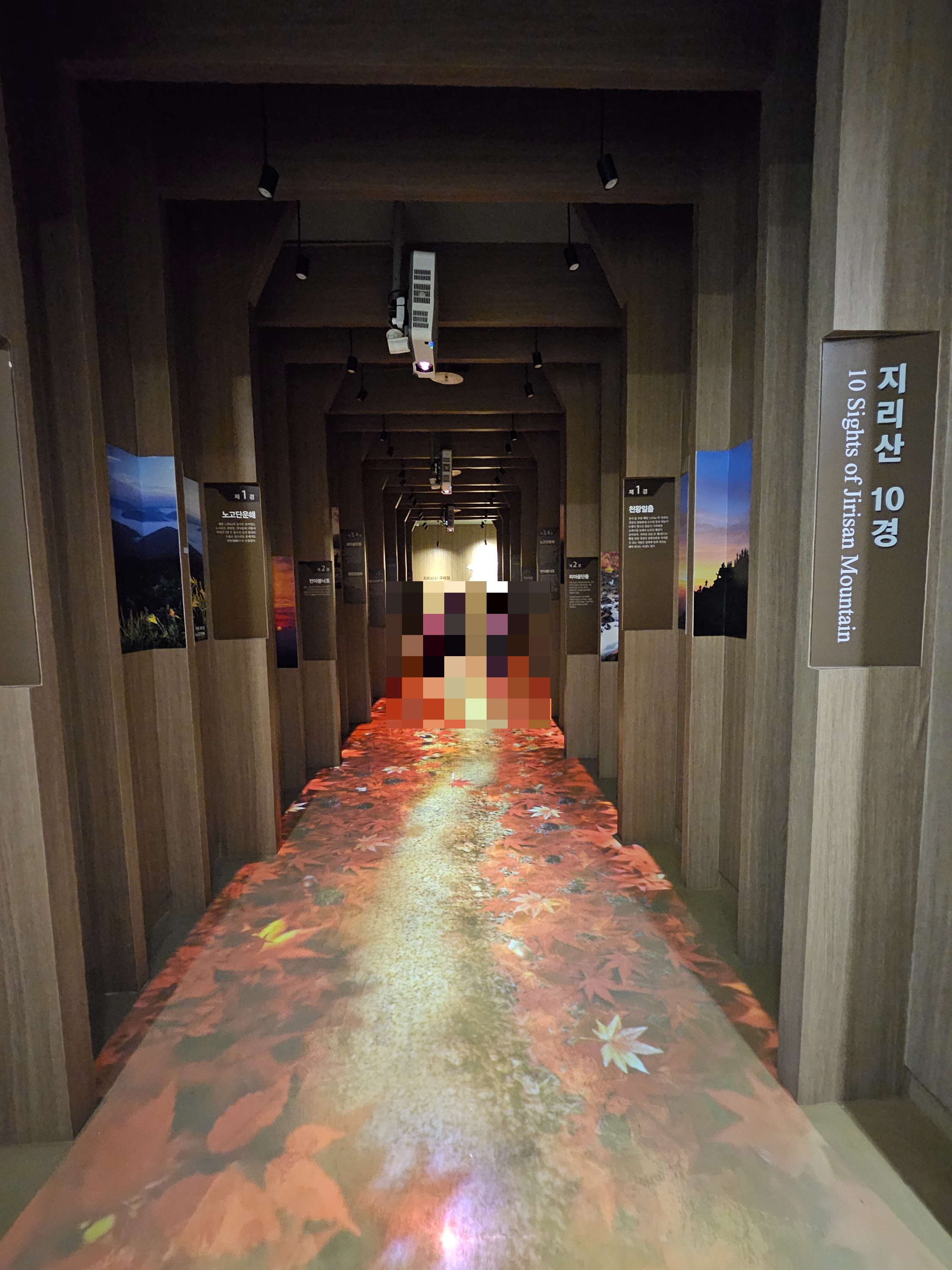바닥에 표현된 미디어 아트로 지리산의 봄, 여름, 가을, 겨울을 만날 수 있습니다.