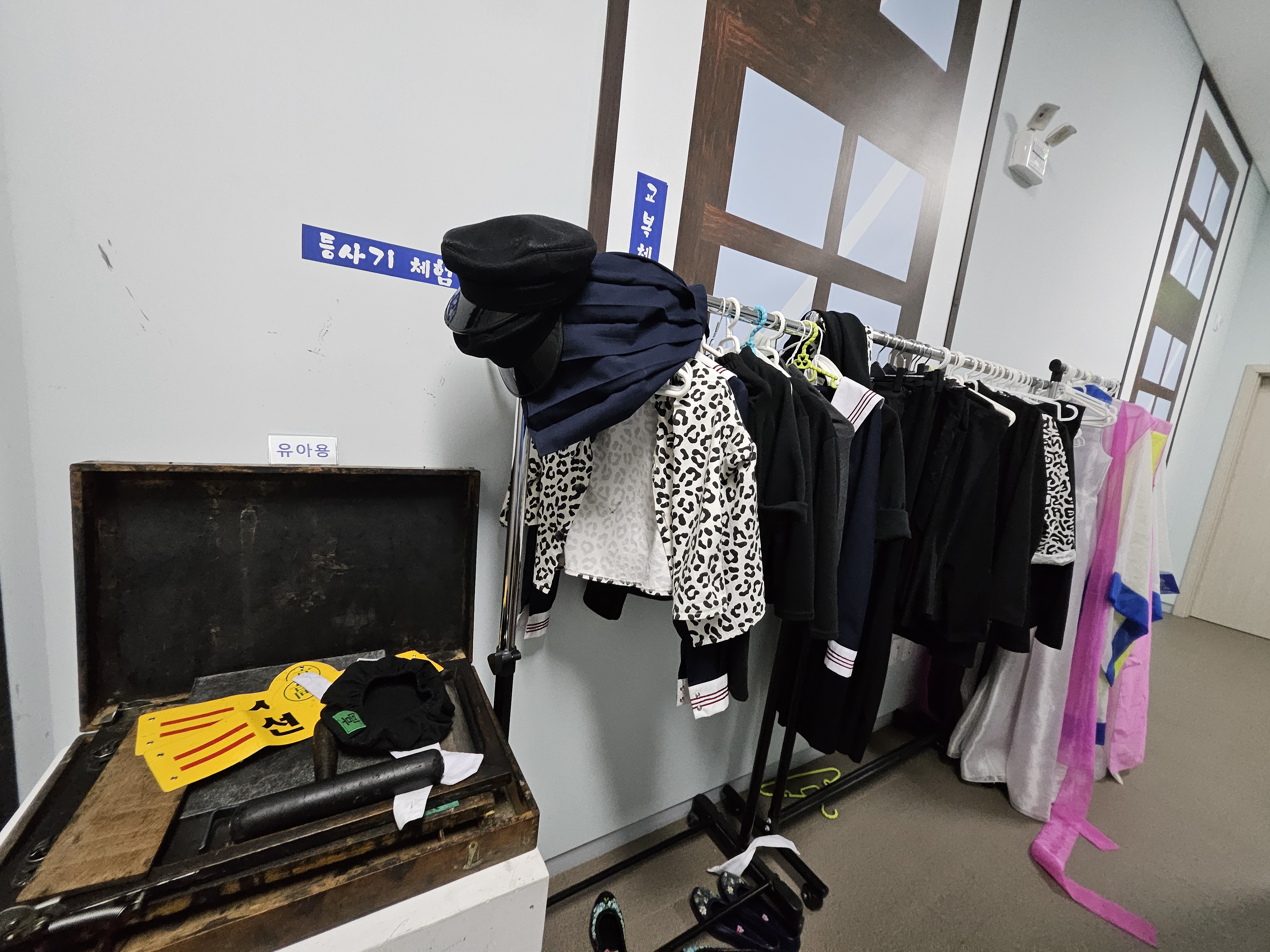 옆으로 실제 옛날 교복이 비치되어 있어 교복을 입어 볼 수 있는 체험공간도 있습니다.