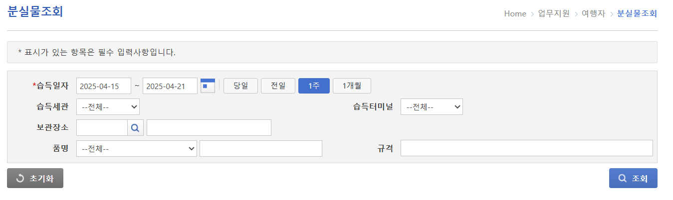 위 세관의 경우 과세대상습득의 경우 분실물조회가 가능한 것으로 보입니다.