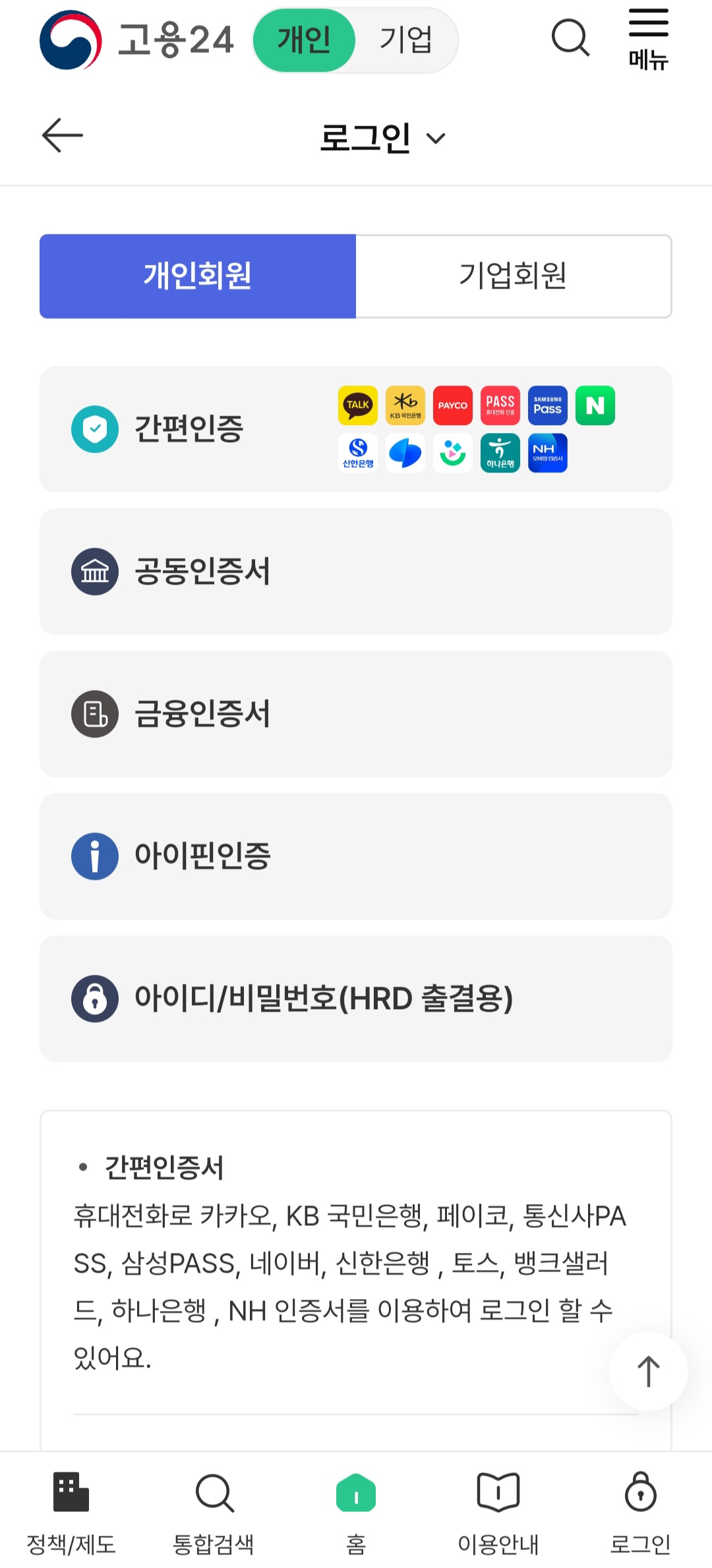 꼭 공동인증서를 깔지 않아도 쉽고 간편한 간편 로그인도 있습니다.