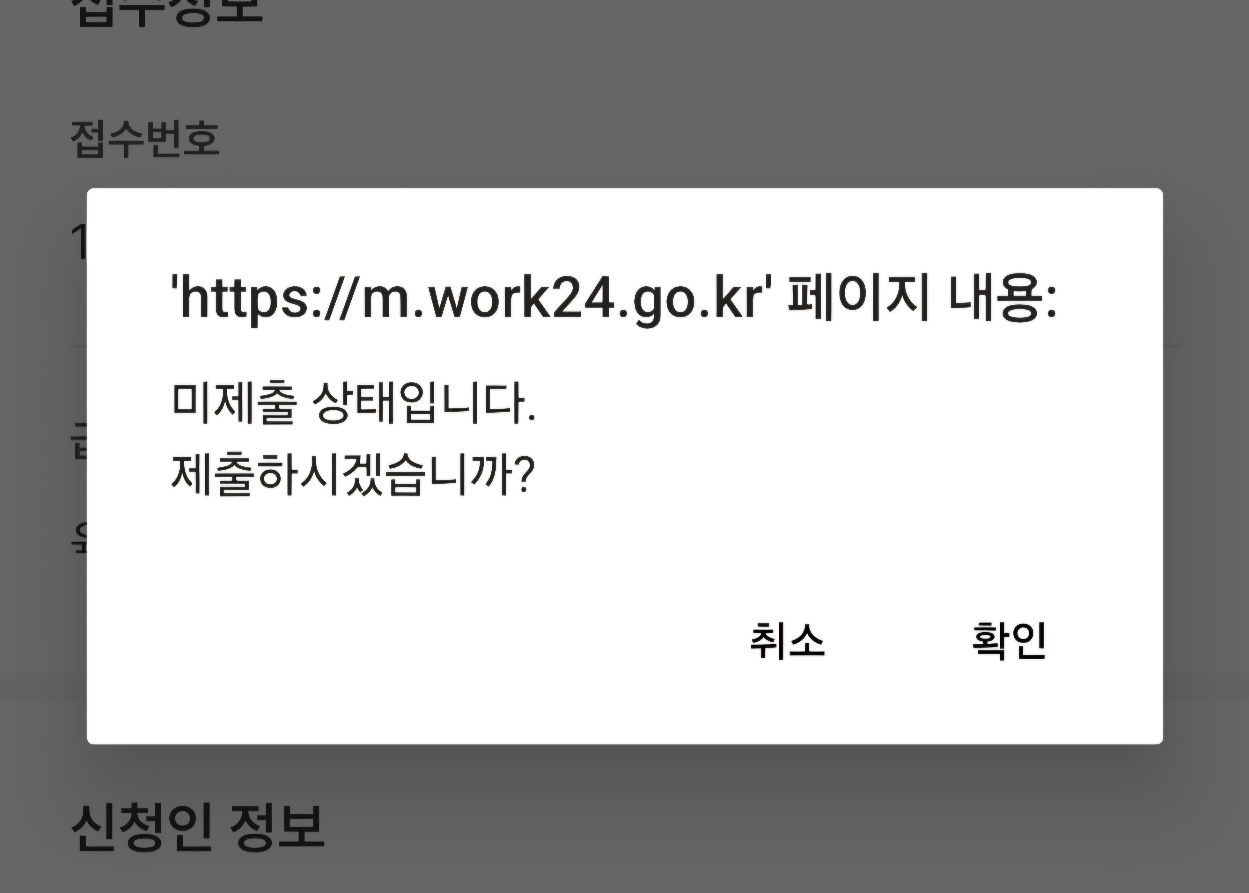 '미제출 상태입니다. 제출하시겠습니까?'에 확인을 누릅니다.