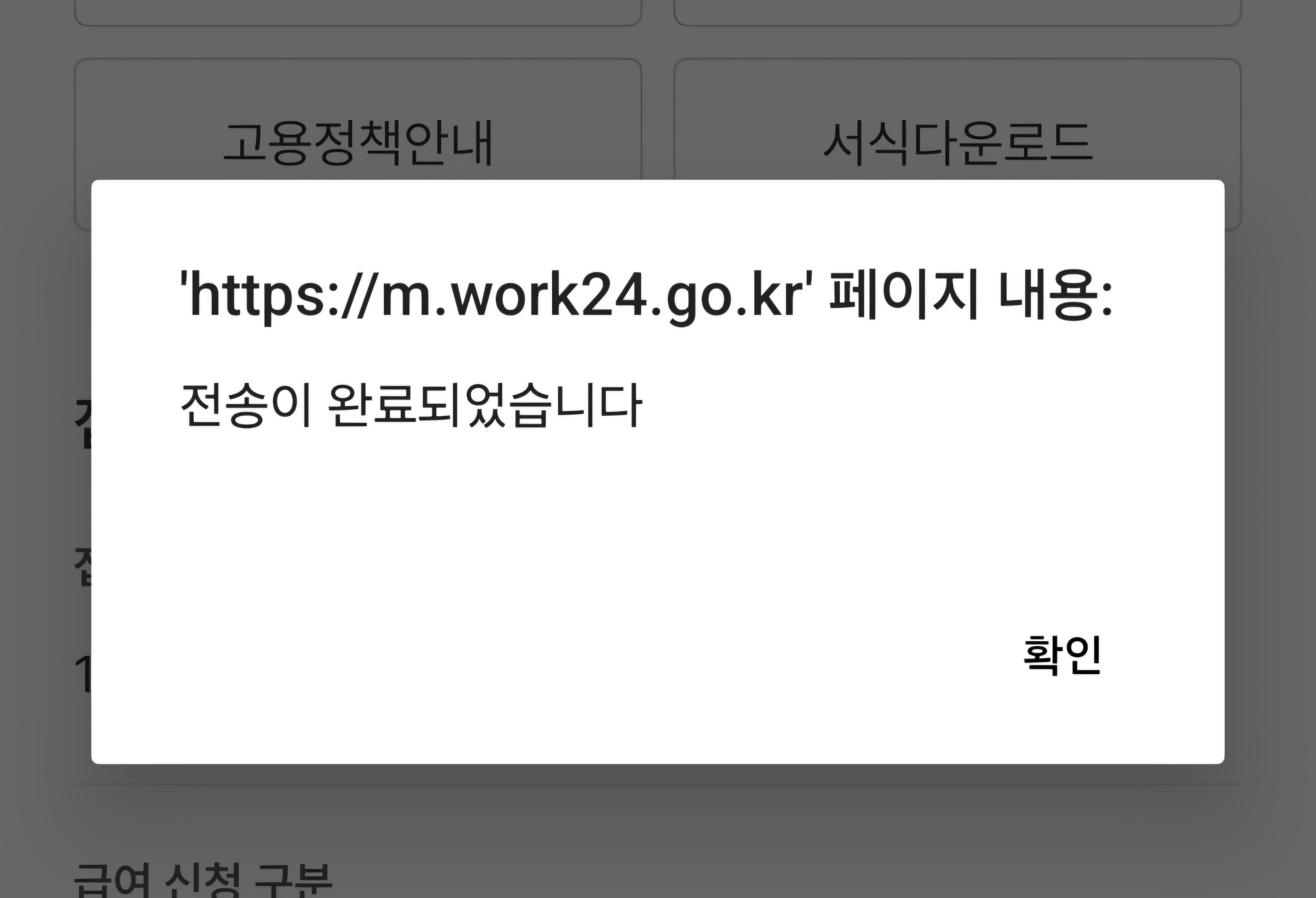 마지막으로 육아휴직 급여 신청서를 제출하시겠냐는 페이지에 확인을 누르면 전송이 완료됩니다.