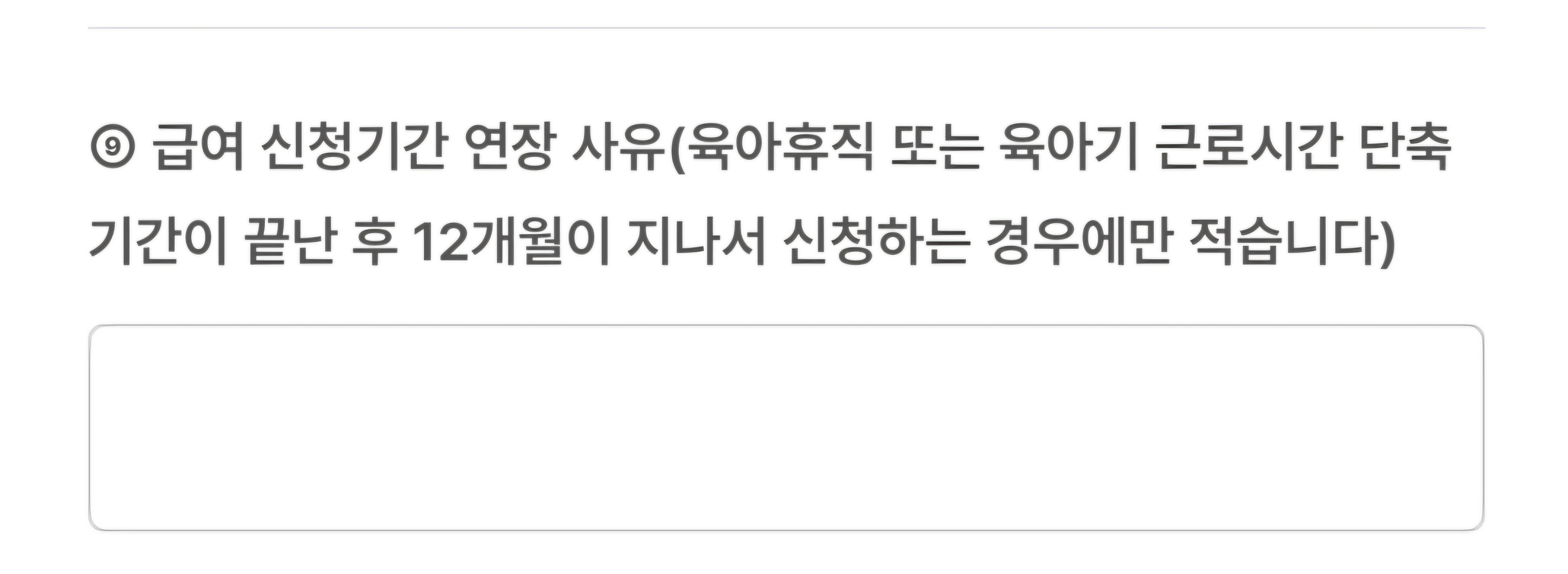 한부모 가정인지, 급여 신청기간의 연장 사유가 있는지(육아휴직이 끝난 후 12개월이 지나서 신청하는 경우)란에 체크합니다.