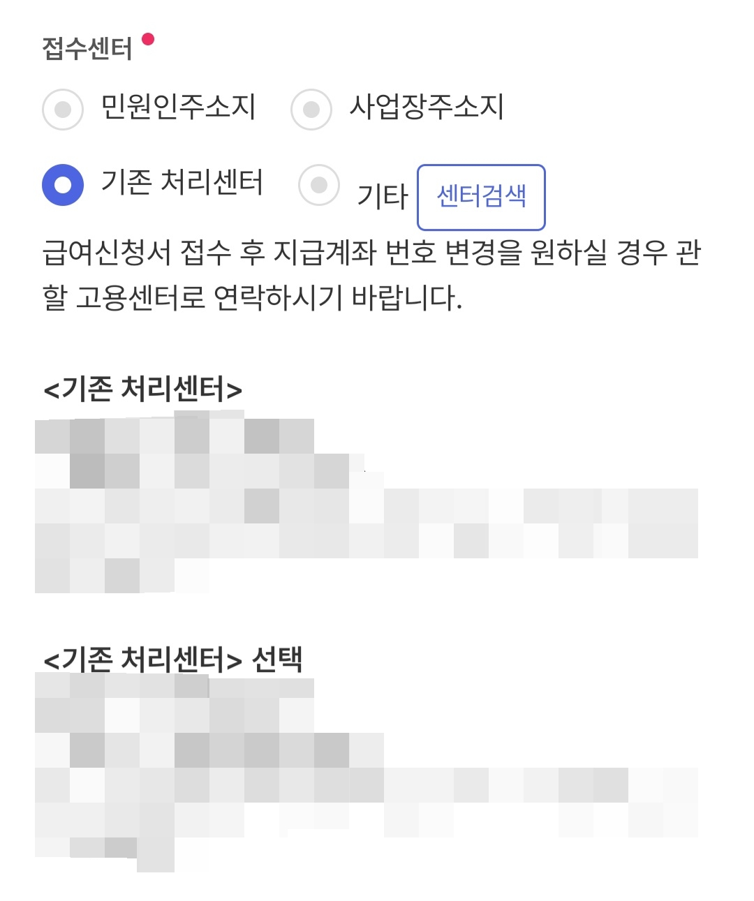 어디로 접수를 할 것인지 묻는 접수센터 체크란이 있습니다.