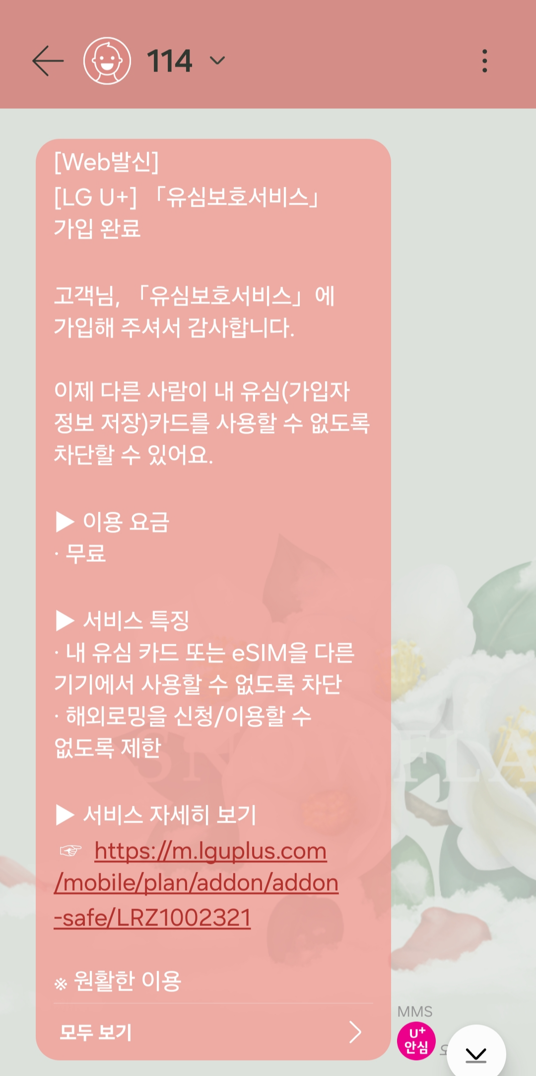 유심보호서비스에 가입되었다는 문자가 발송됩니다.