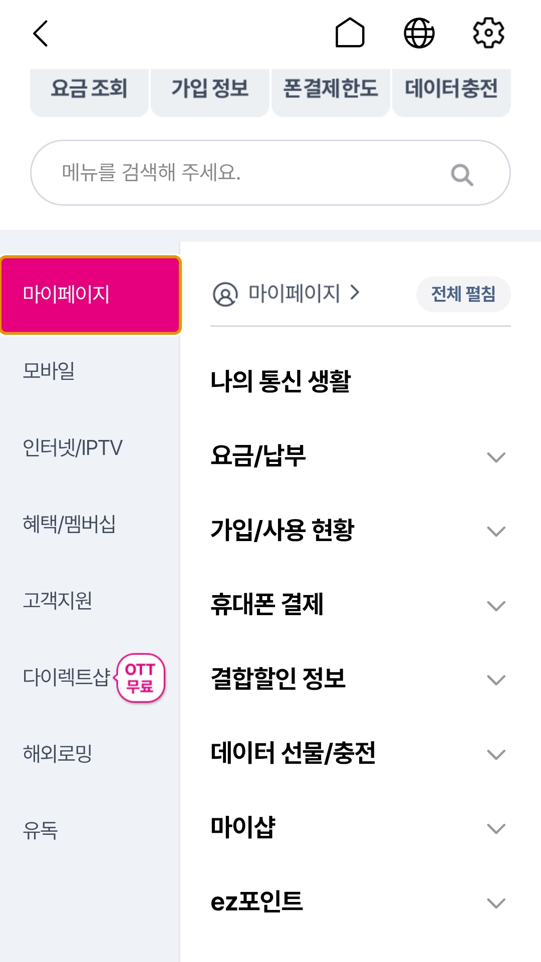 엘지 유플러스(LG U+) 모바일 앱을 실행합니다.