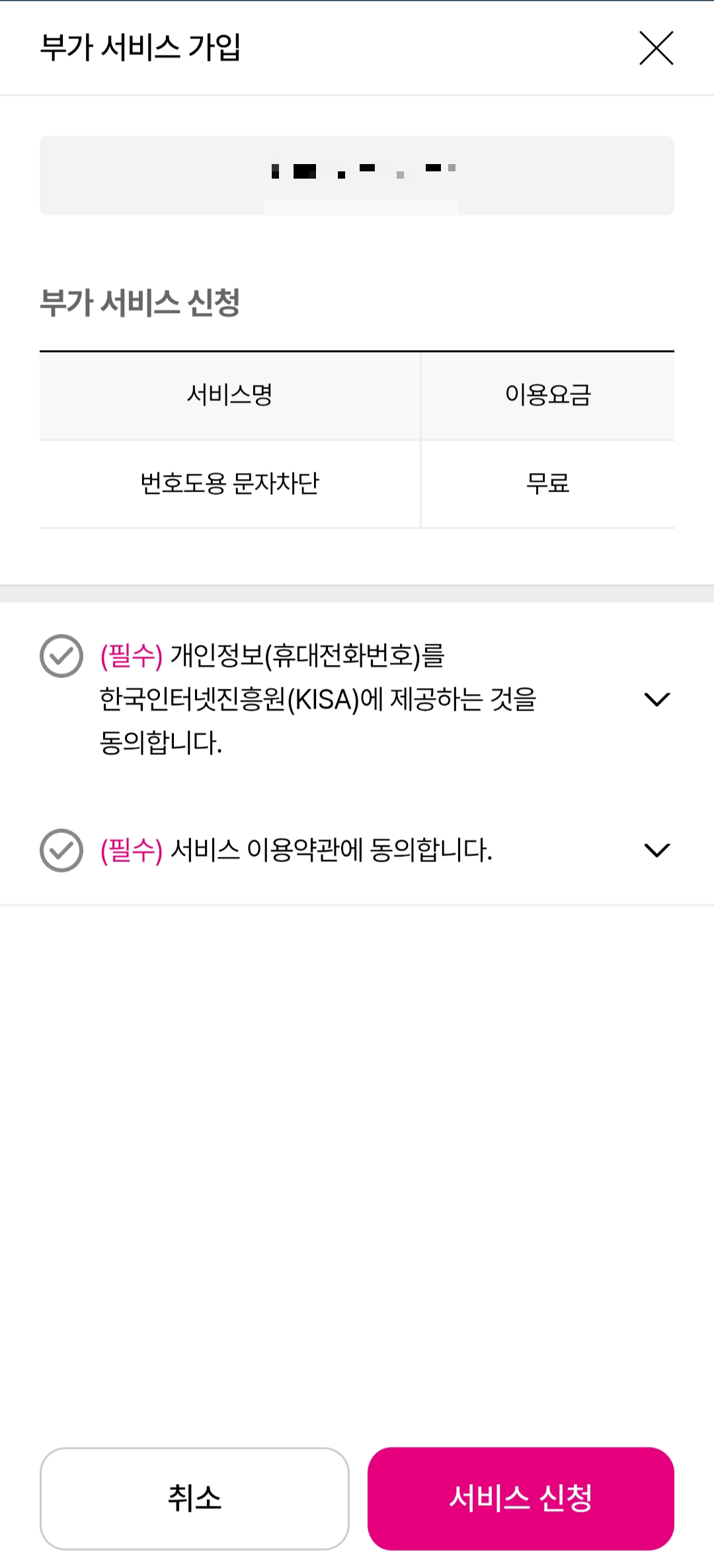 번호가 도용되지 않도록 차단해 주는 서비스로
