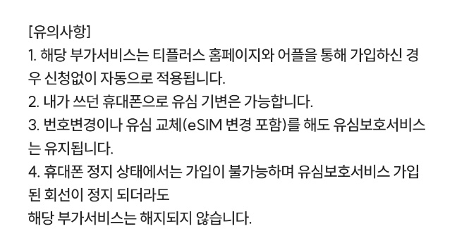 번호변경이나 유심교체를 해도 유심보호서비스는 유지됩니다.