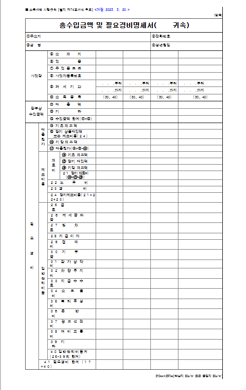 경비가 많으신 경우 간편장부를 작성하여