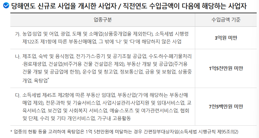 신규사업자 또는 직전연도 수입금액 4,800만 원 미만인 소규모 사업자가 아닌 경우