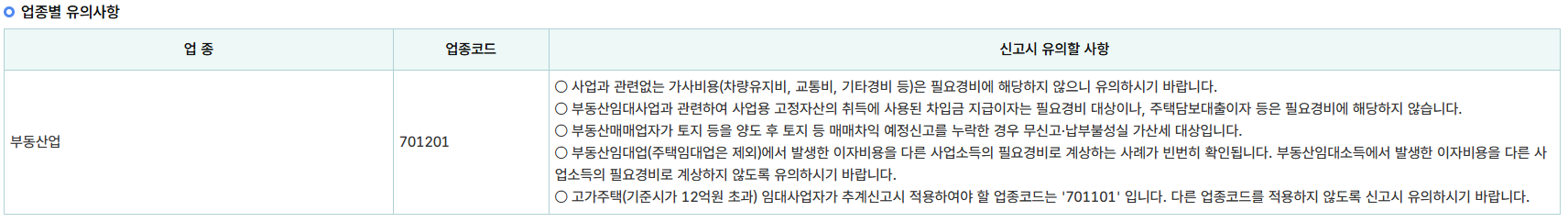 (부동산 임대업의 경우 부동산입대업에서만 공제)