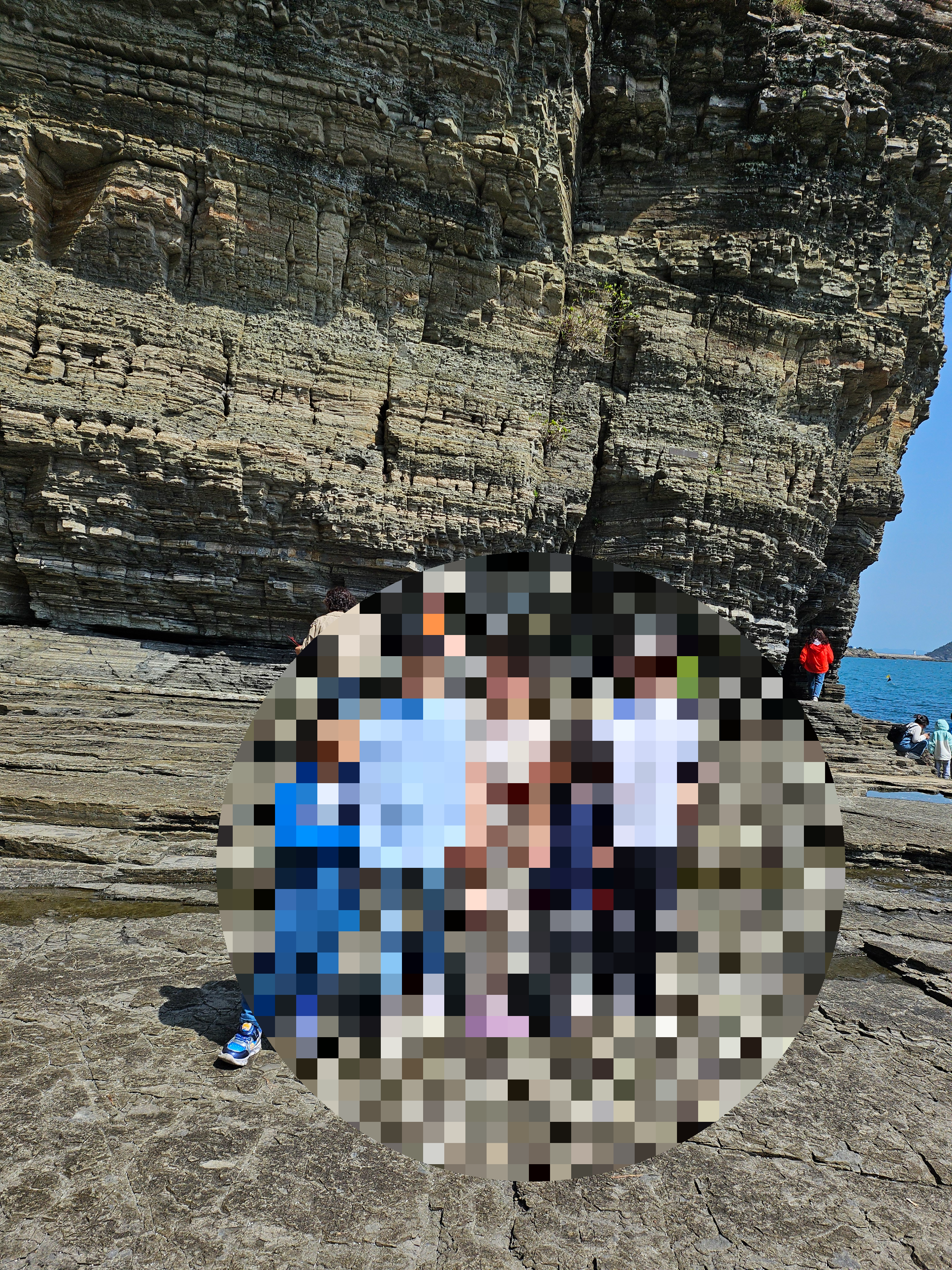 층층이 쌓인 신기한 모습의 해식애를 보며