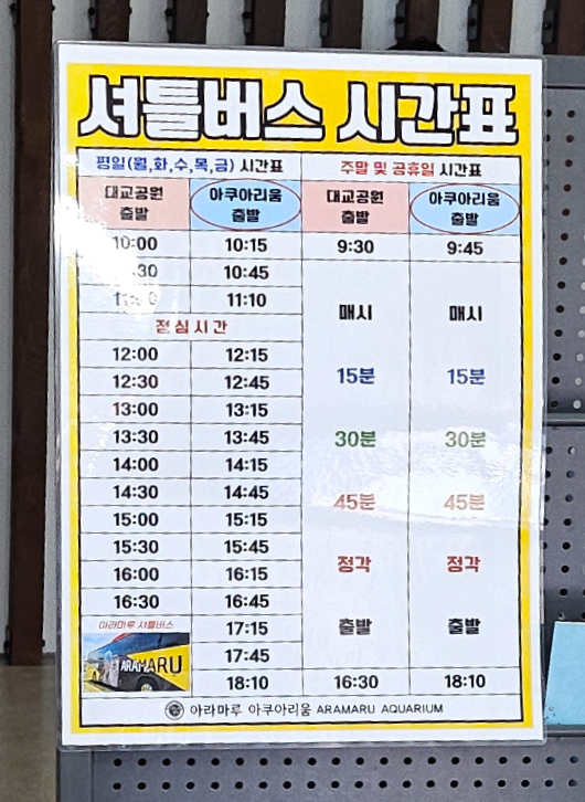 평일 아쿠아리움 출발은 10:15분부터 시작하여