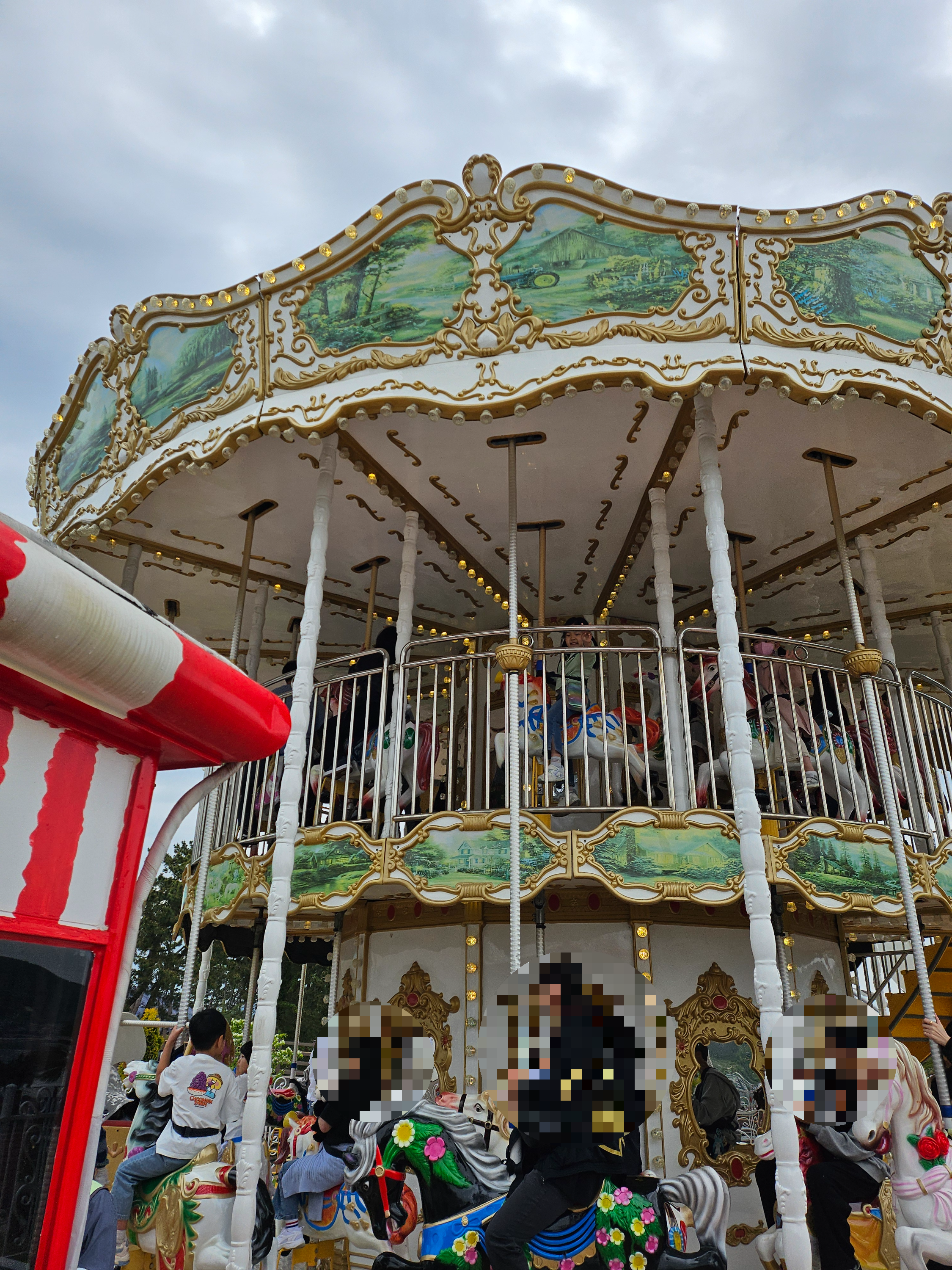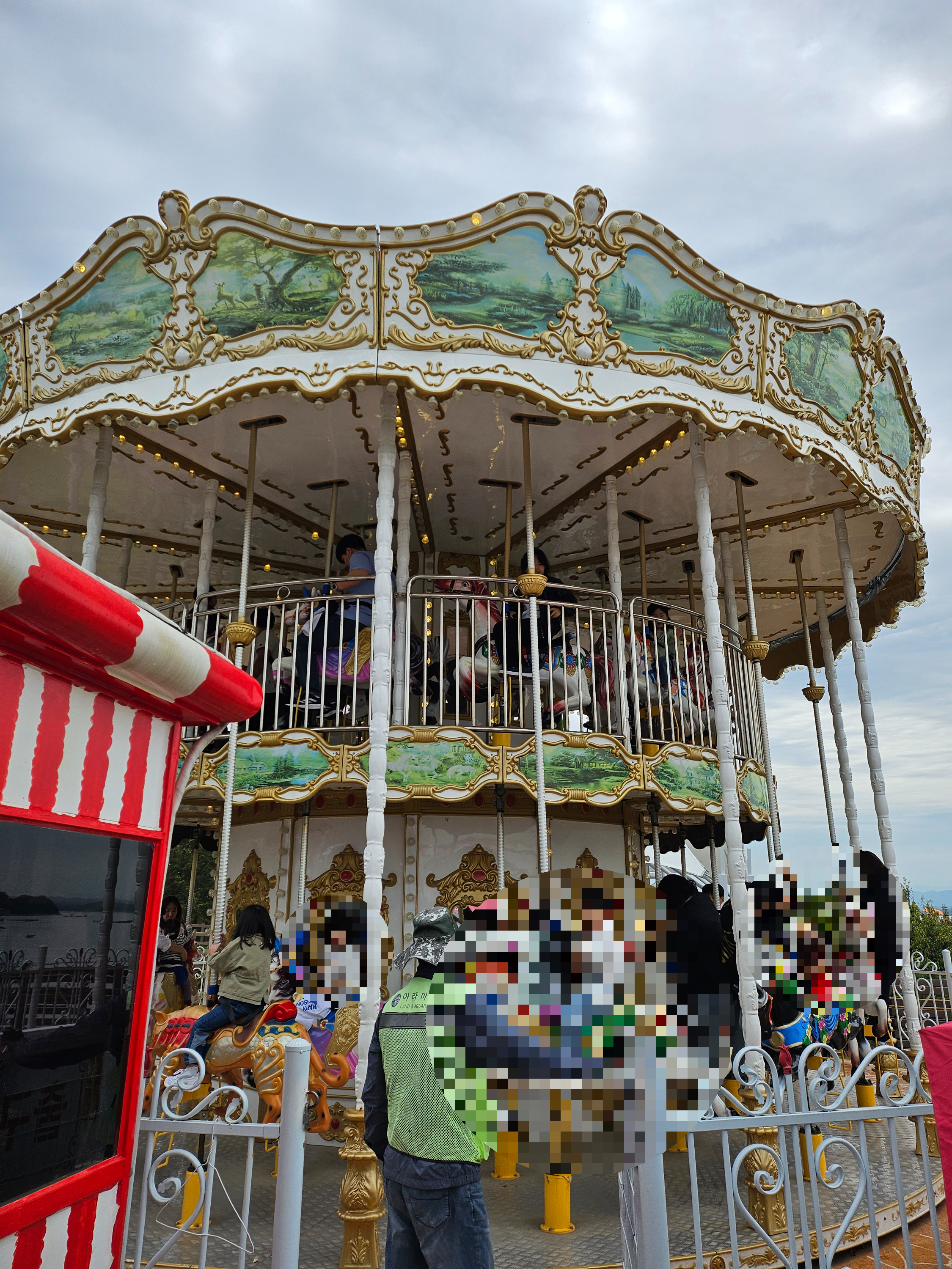 대관람차 옆에 2층으로 된 회전목마가 위치하고 있습니다.