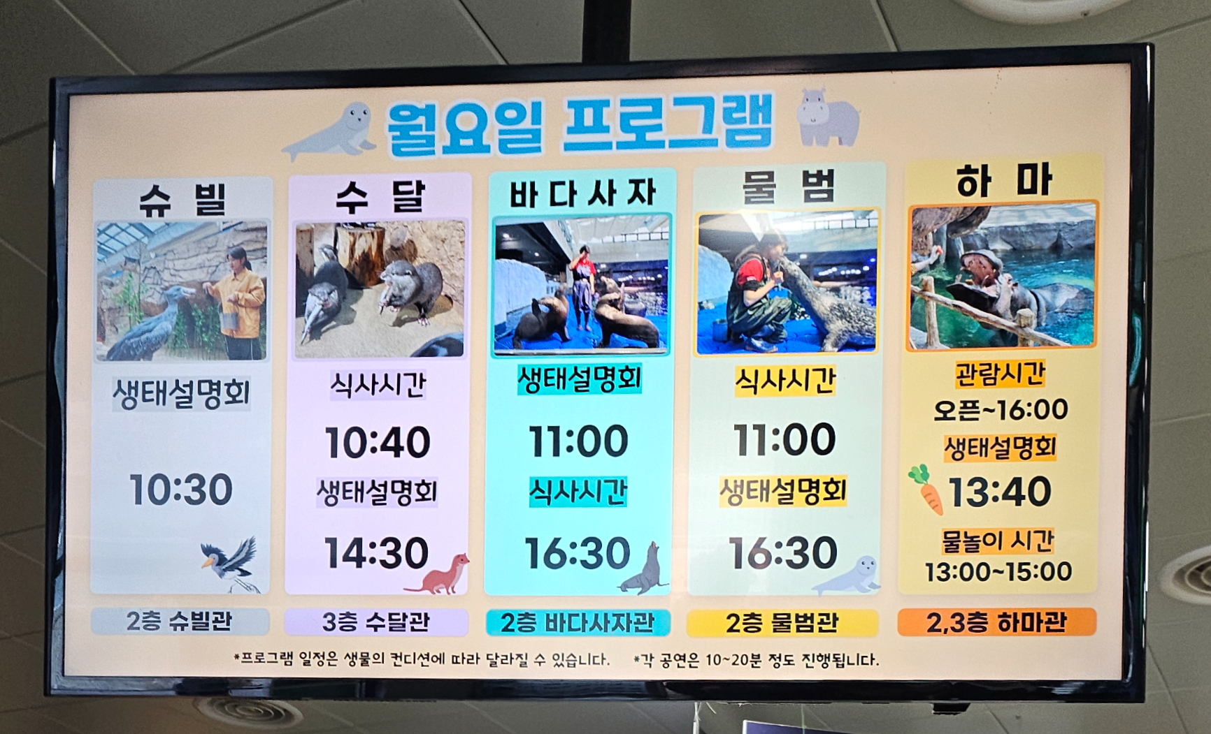 관상어를 배워보는 프로그램, 슈빌 생태설명회, 수달가족의 먹이시간 등