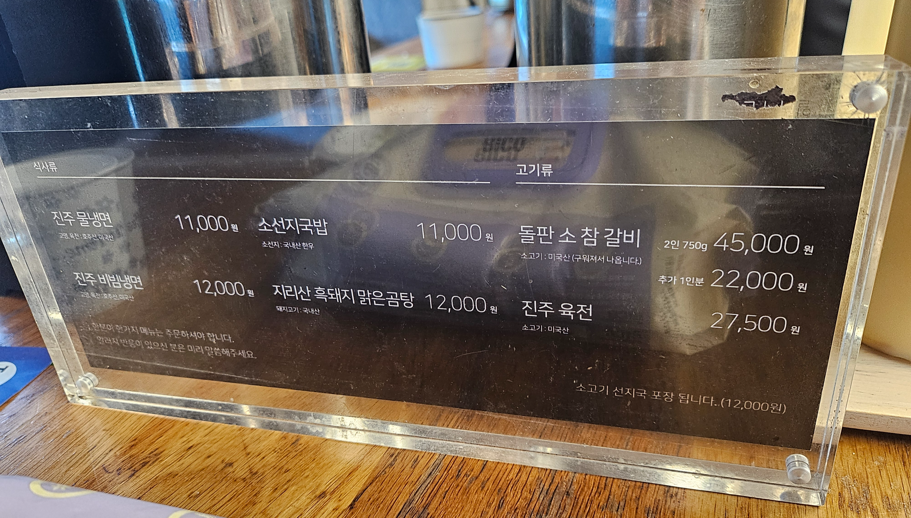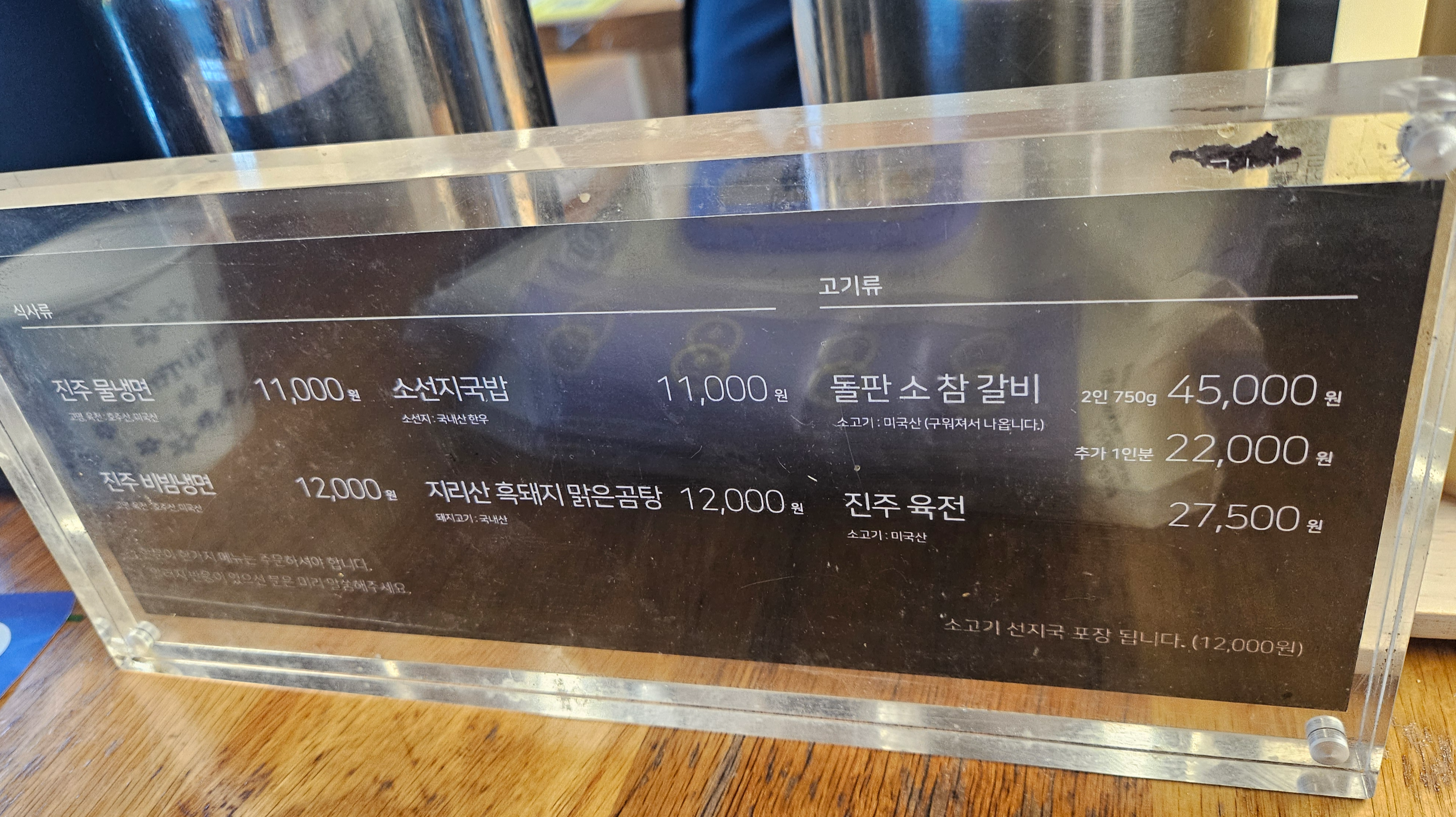 대표 메뉴로 진주냉면, 곰탕, 선지국, 육전 등이 있습니다.