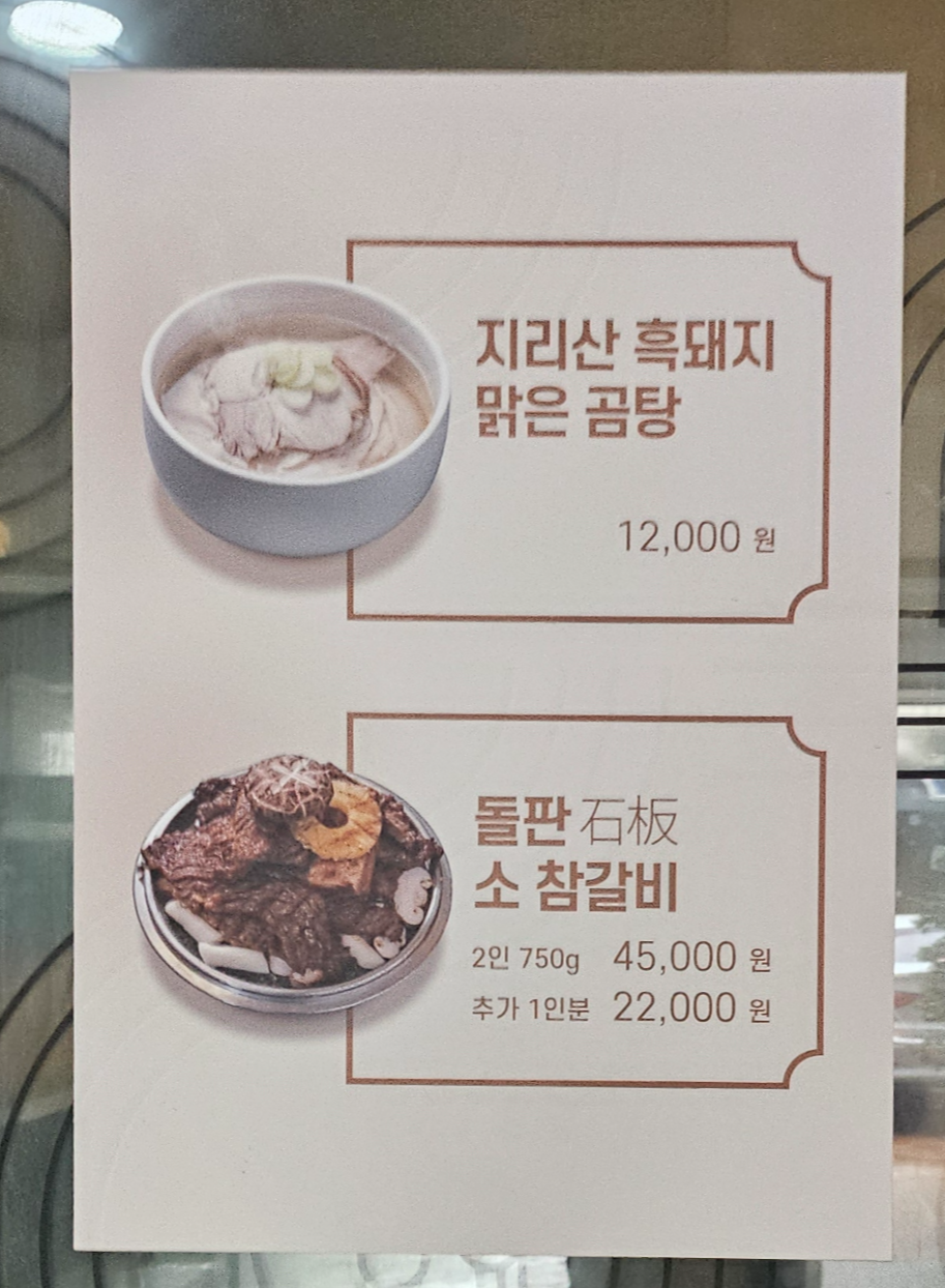 메뉴에는 지리산흑돼지 맑은 곰탕이 있어
