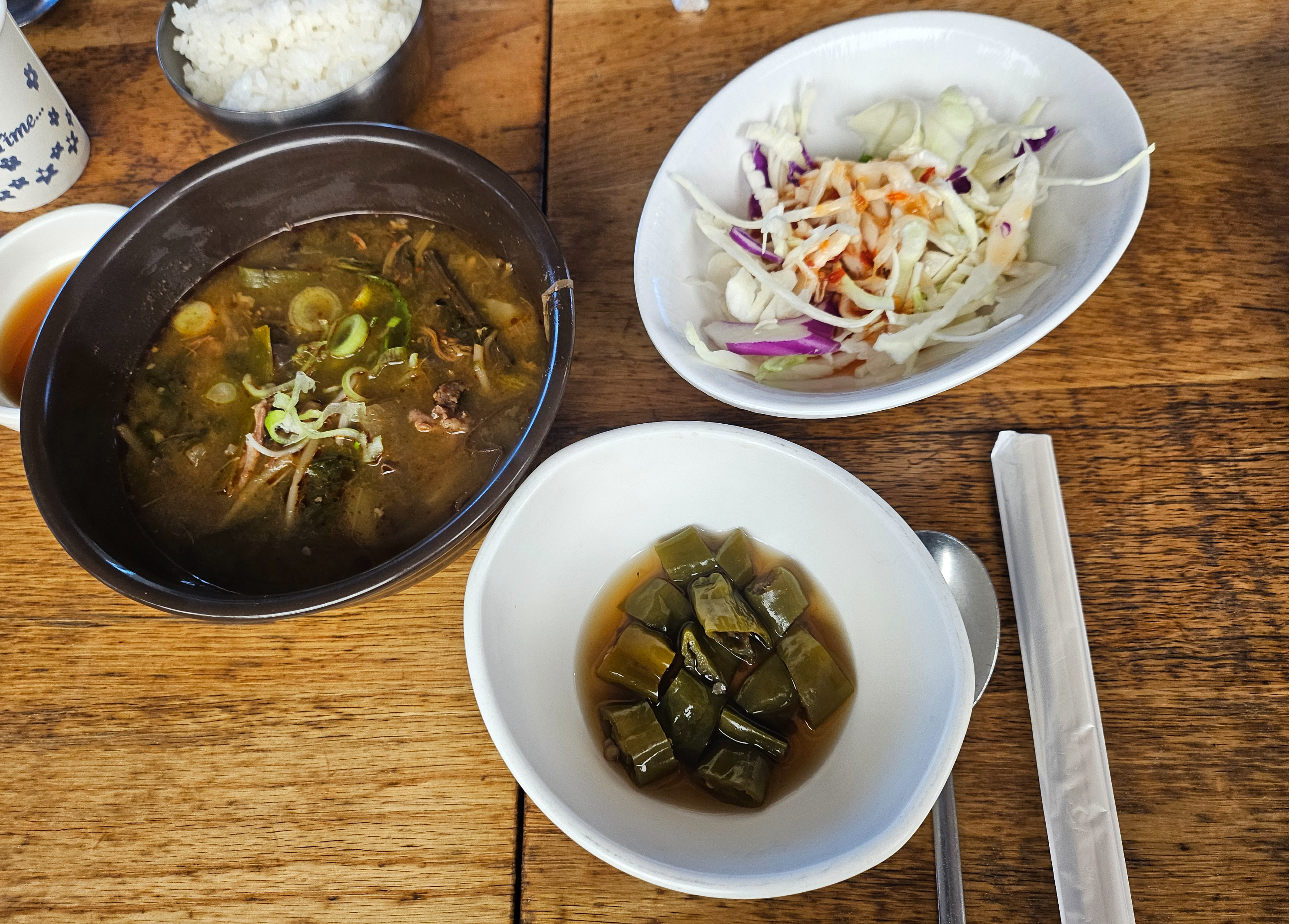 선지국, 샐러드, 고추장아찌가 나옵니다.