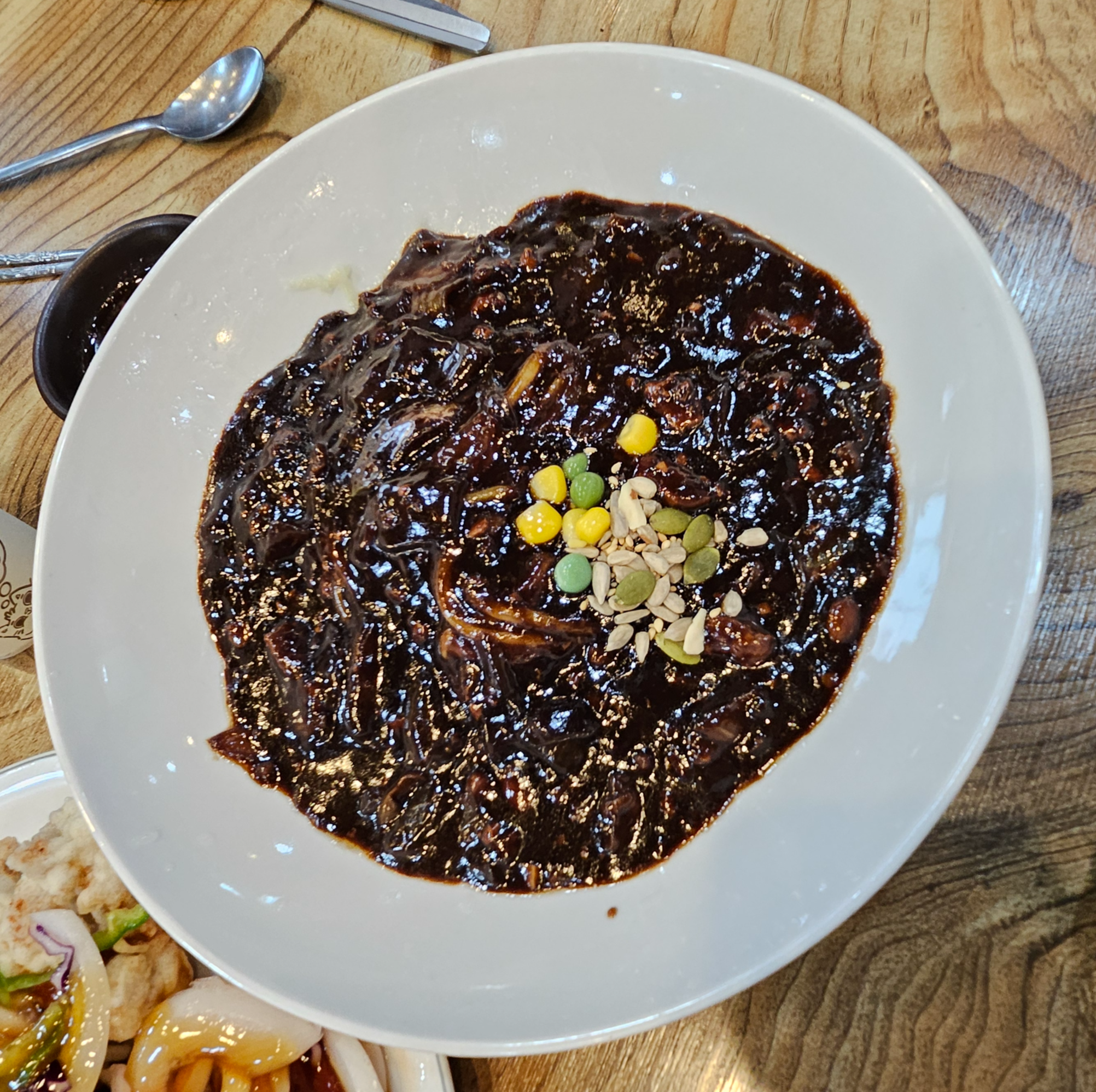 쟁반짜장은 아이들의 입에 좀 매울 수도 있을 것 같아