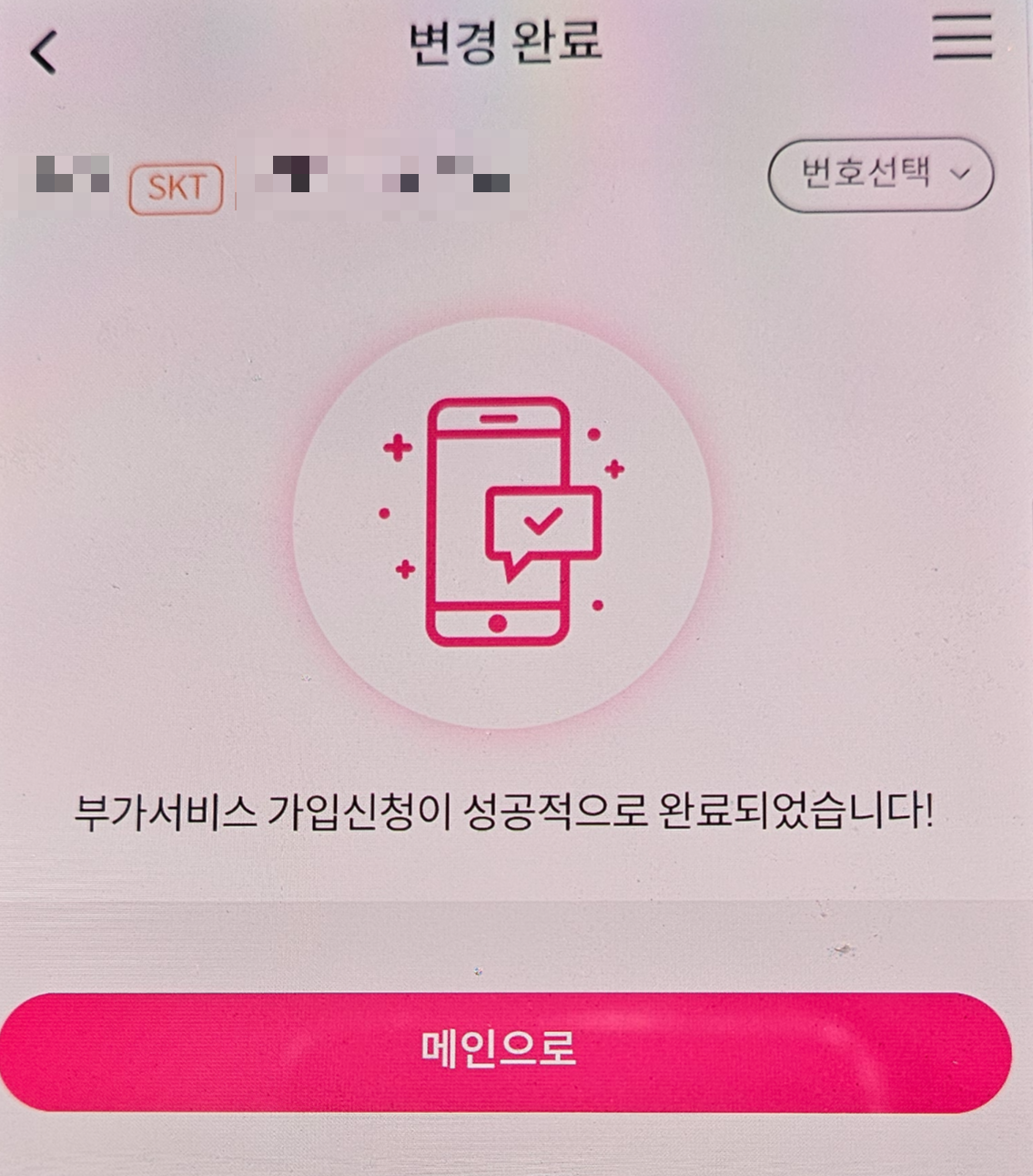 변경 접수가 잘 되었다면 핸드폰이 사용이 되지 않습니다.