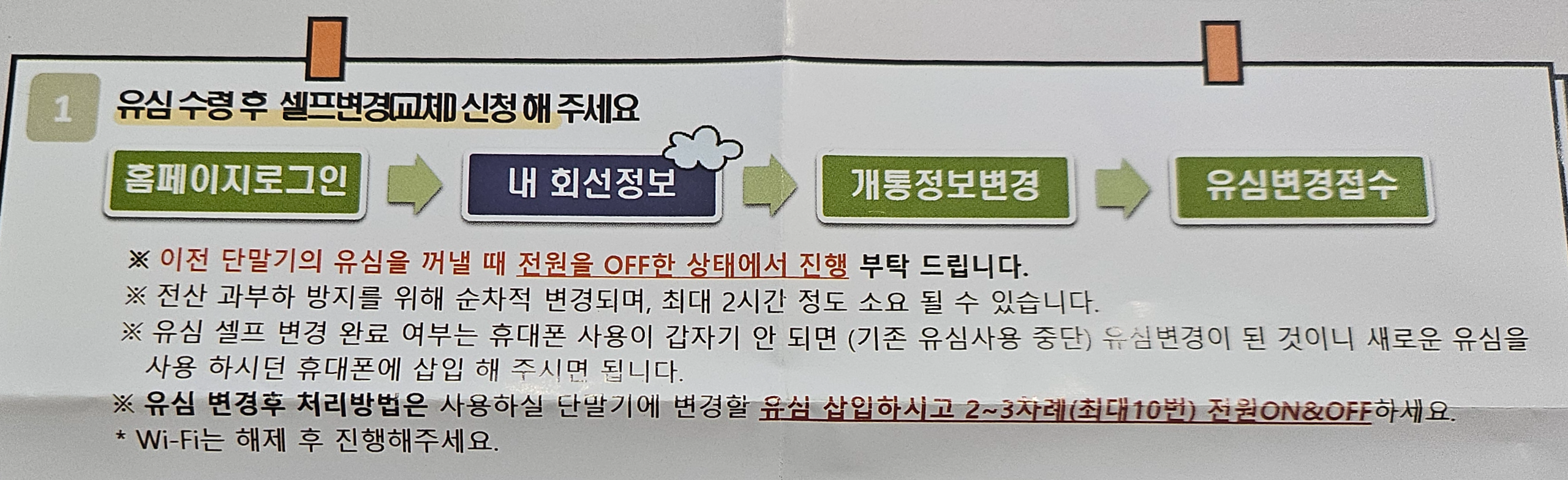 다른 한장 또한 셀프유심교체 방법을 안내하고 있습니다.