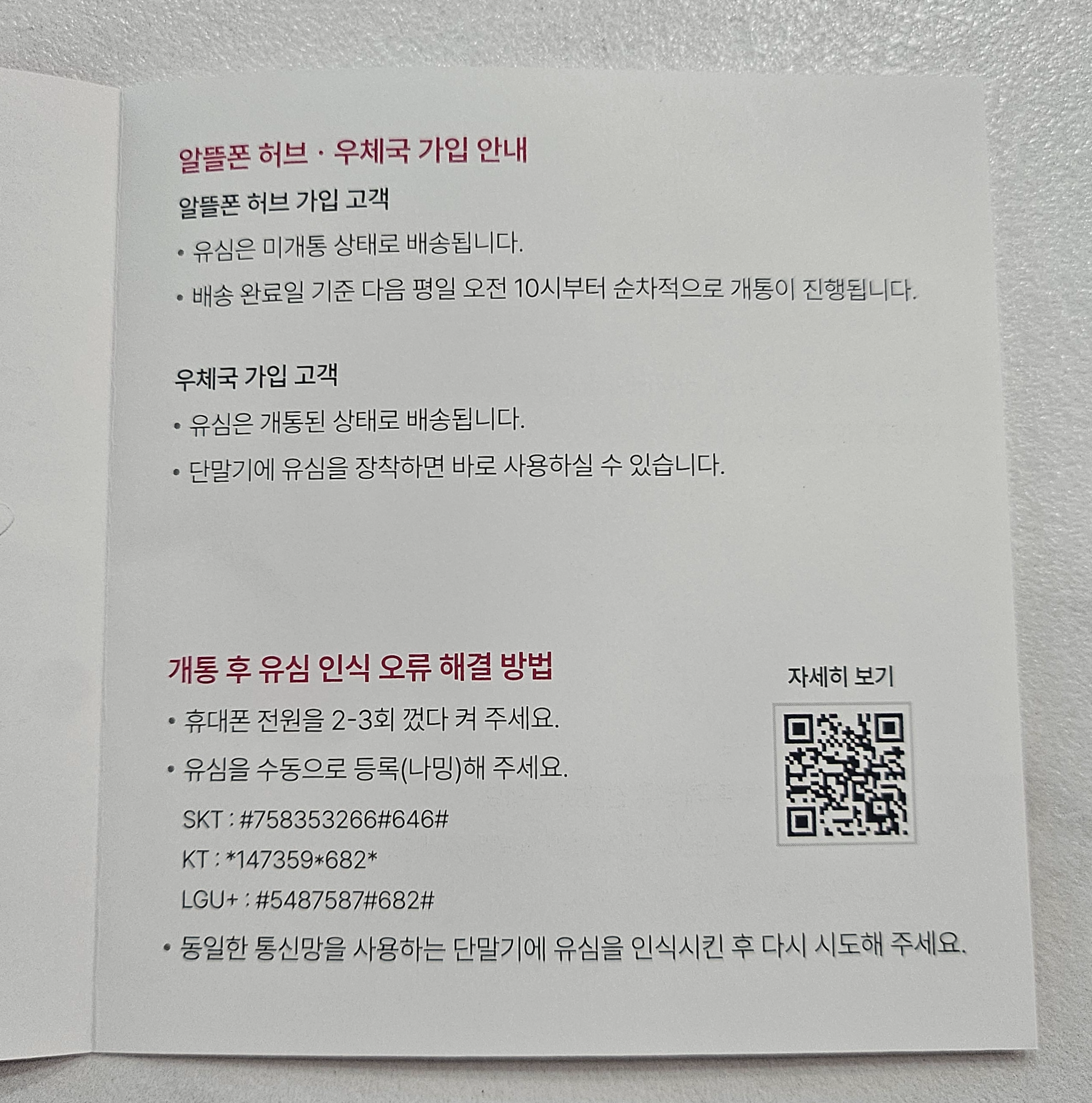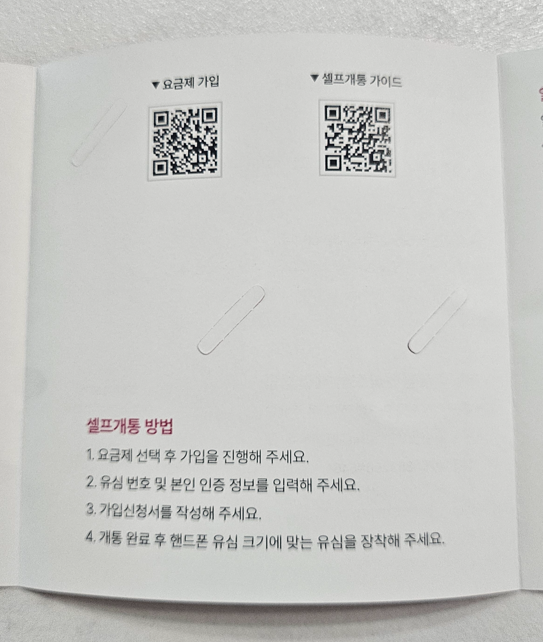 셀프개통방법이 적혀 있습니다.