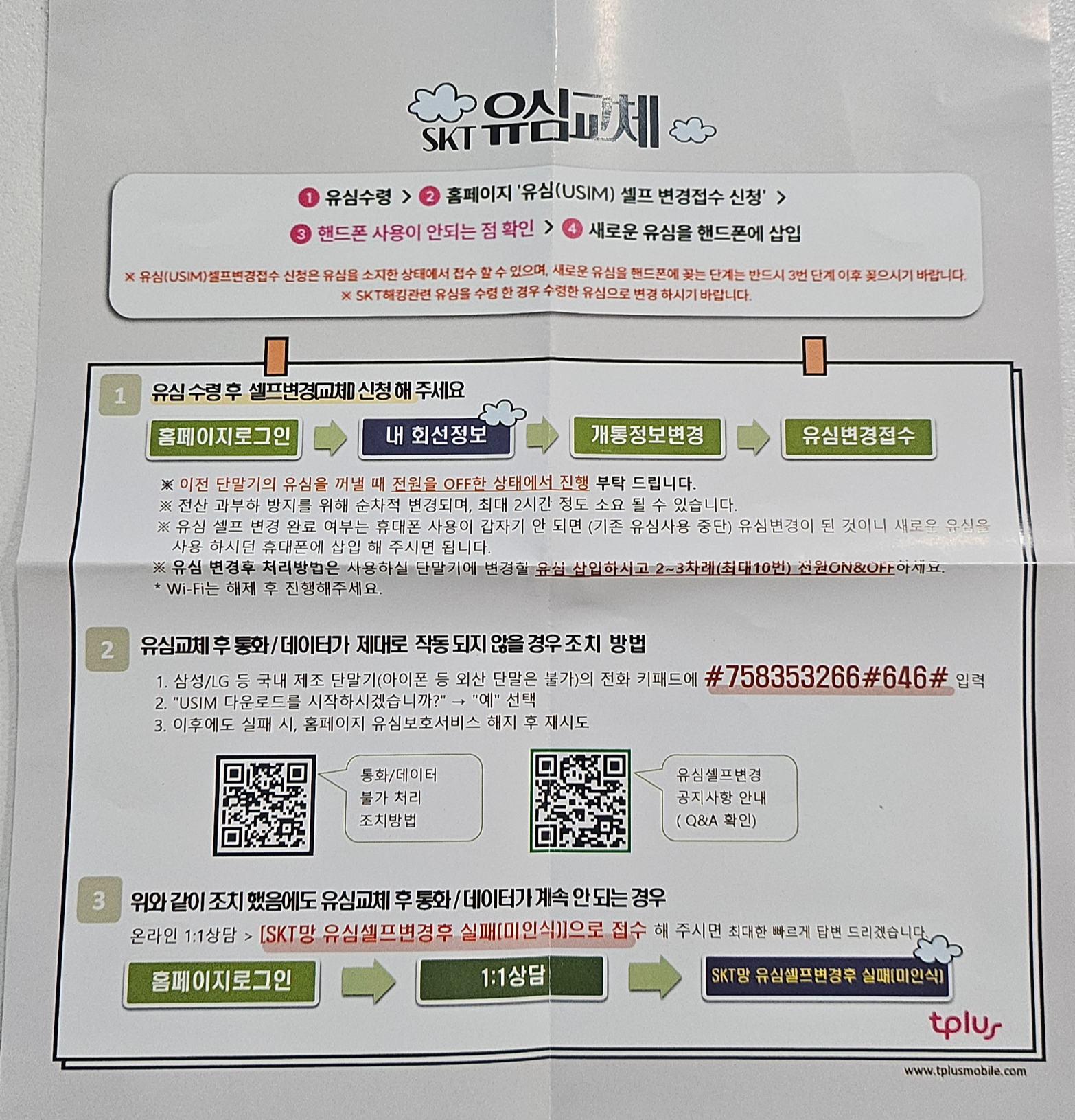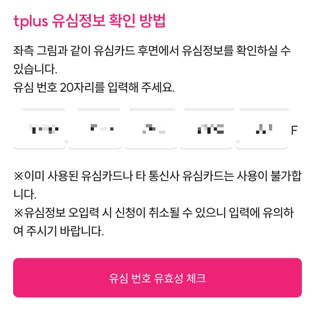 tplus 티플러스 skt망 유심 교체 전