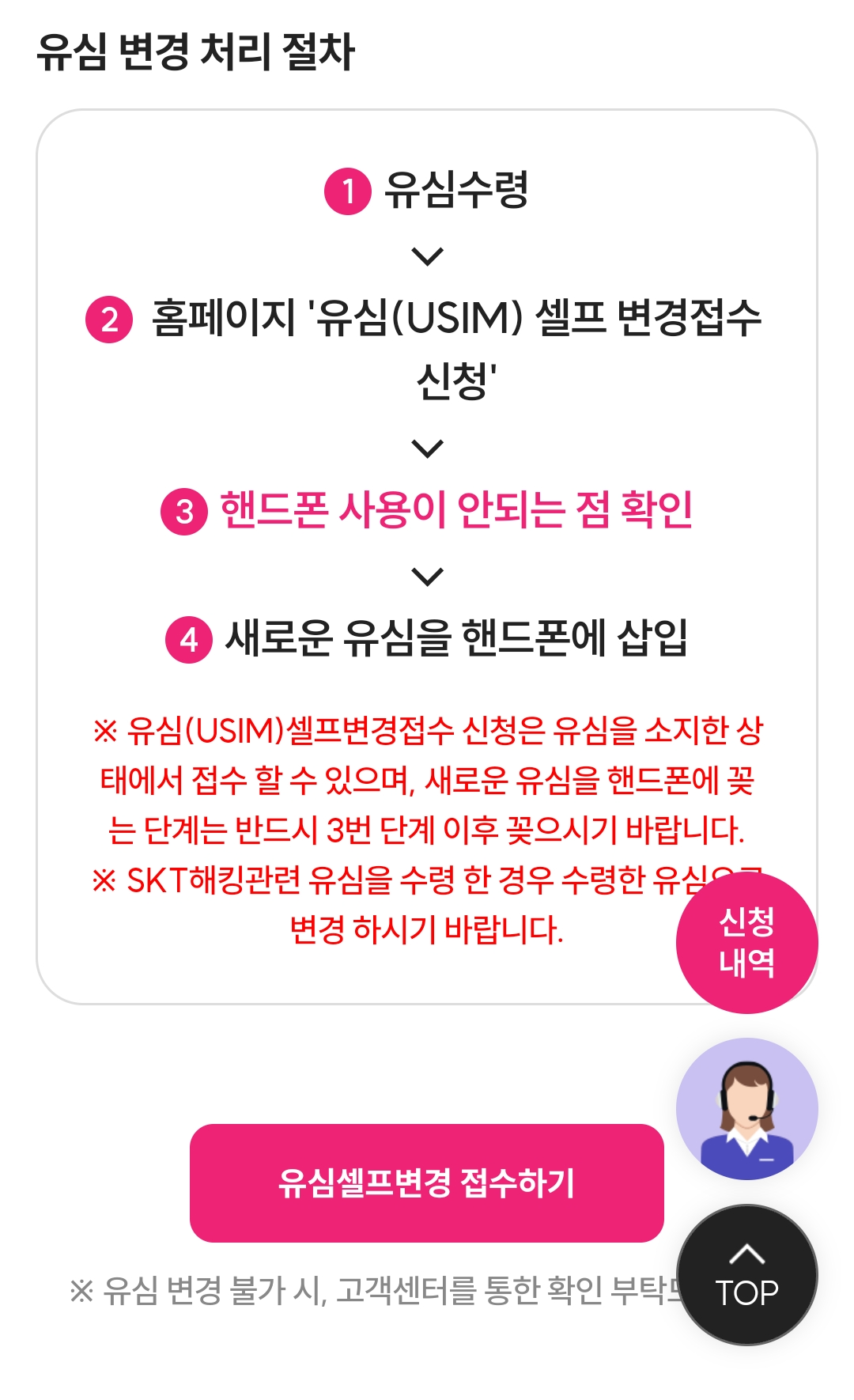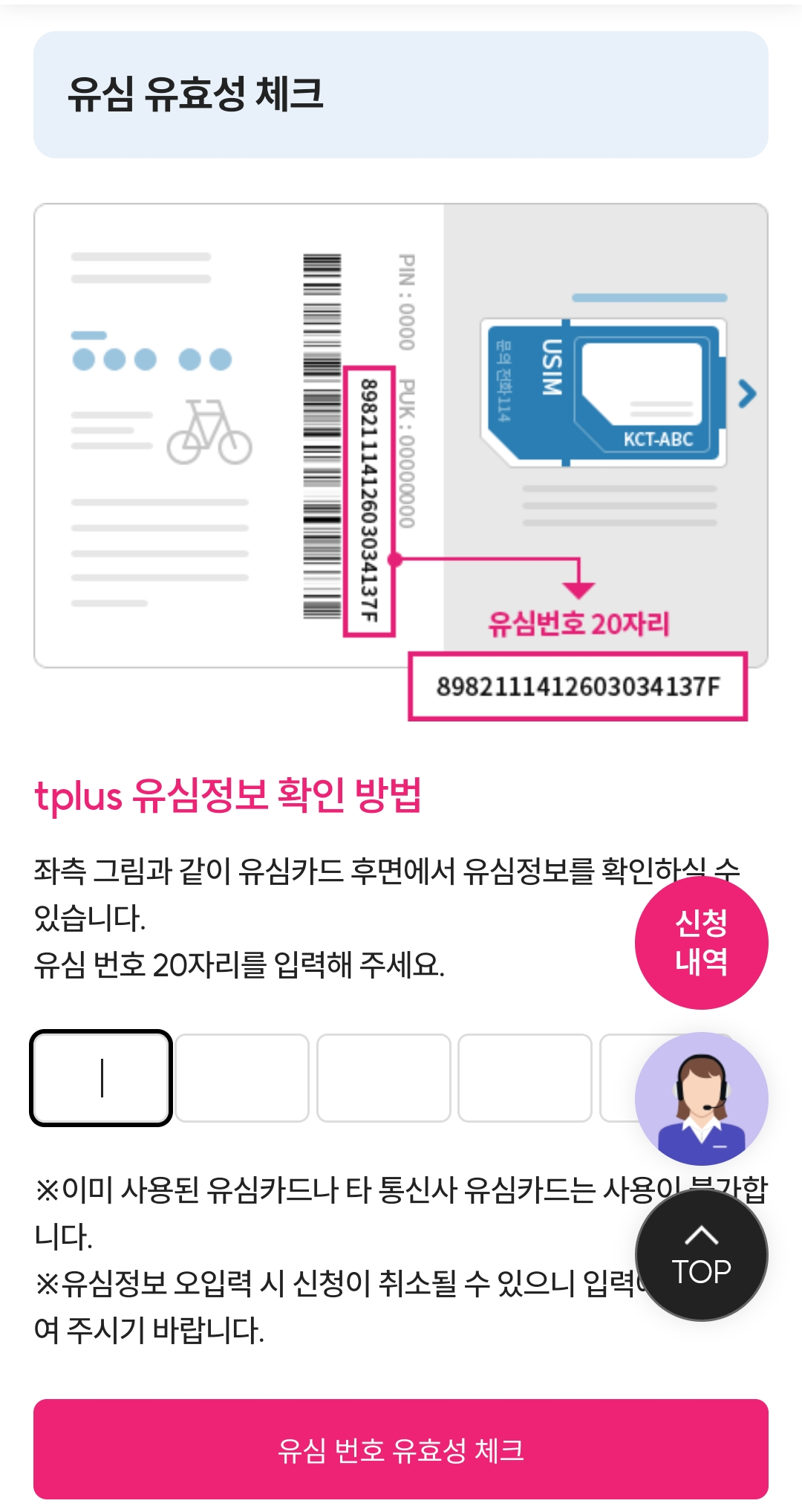 유심을 소지한 상태에서만 접수 가능합니다.