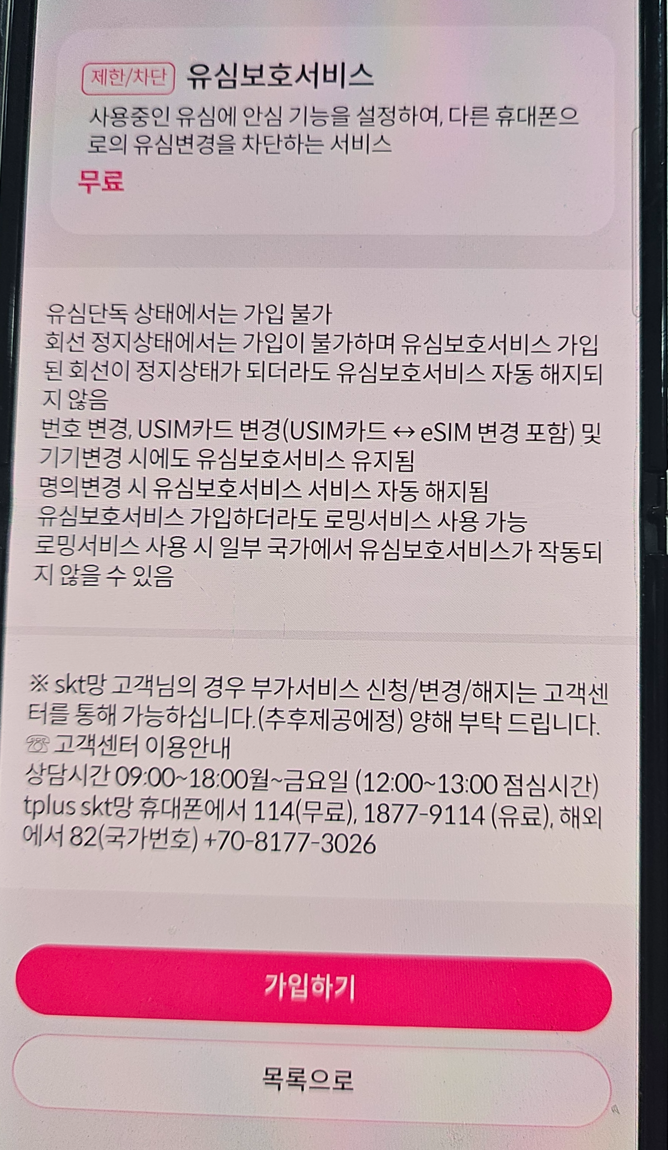 유심보호서비스 가입을 원하시면