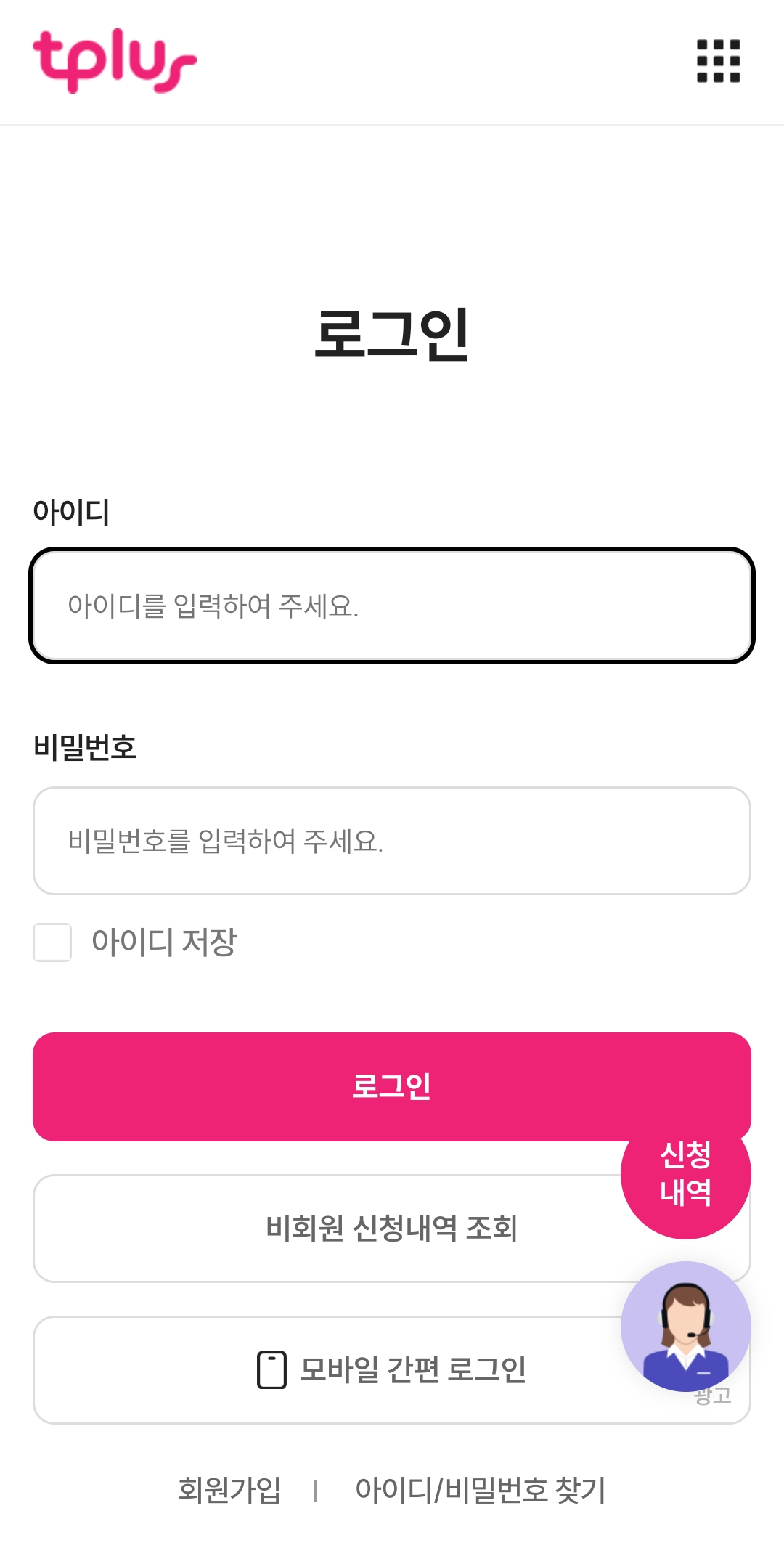 tplus 티플러스를 개통하실 때 회원가입을 해 놓으셨기 때문에