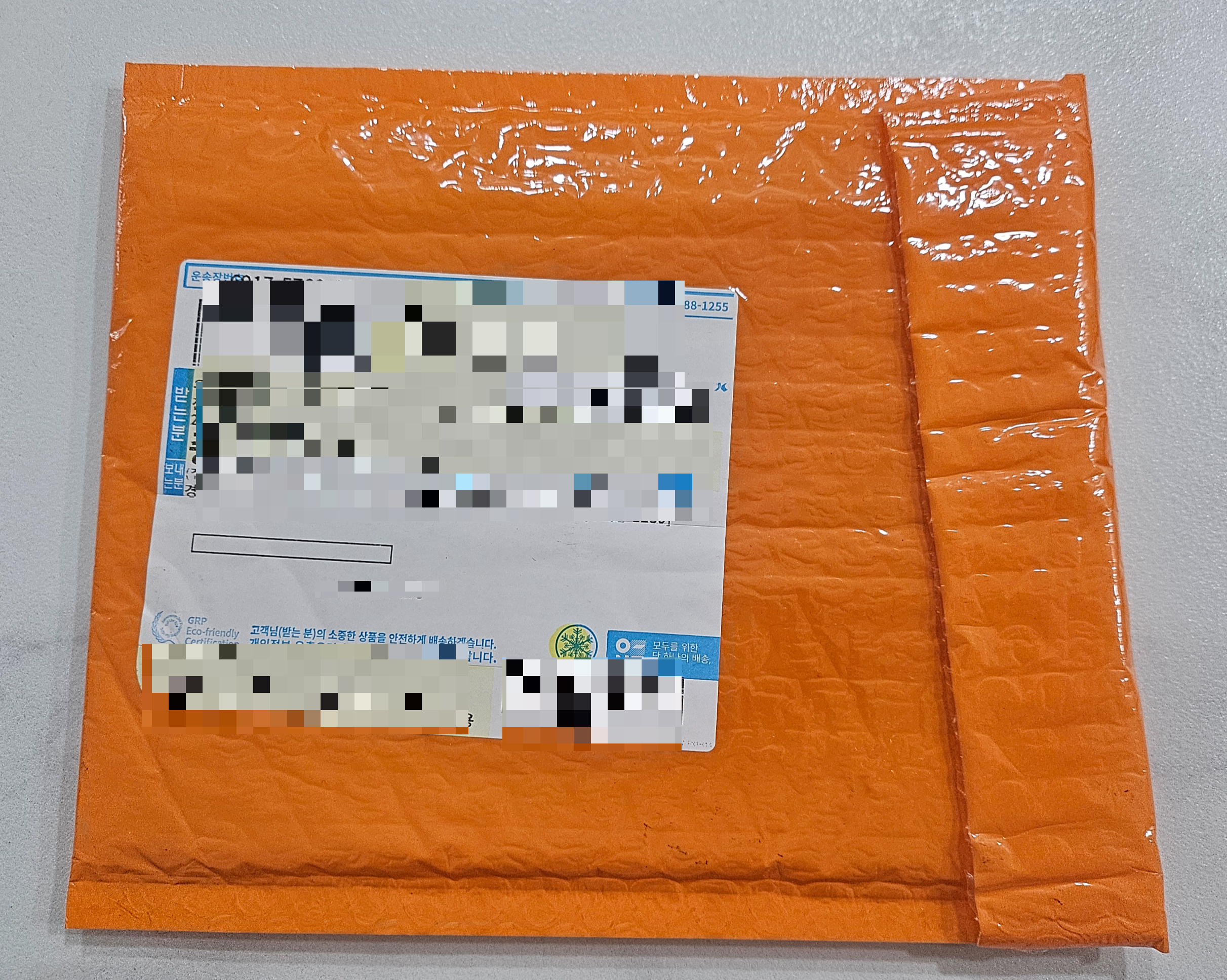 주황색의 작은 봉투로 택배가 하나 도착했습니다.